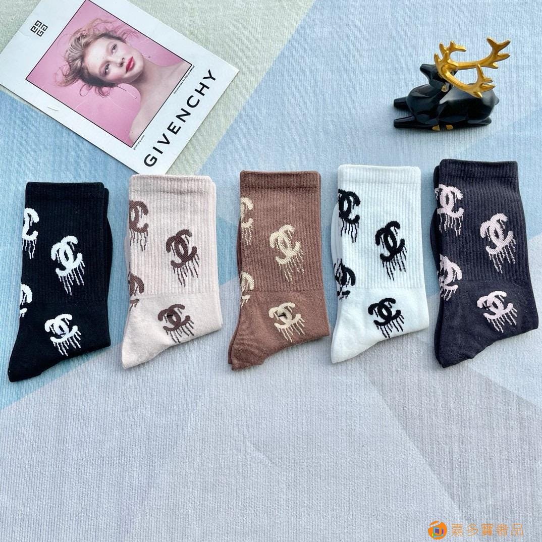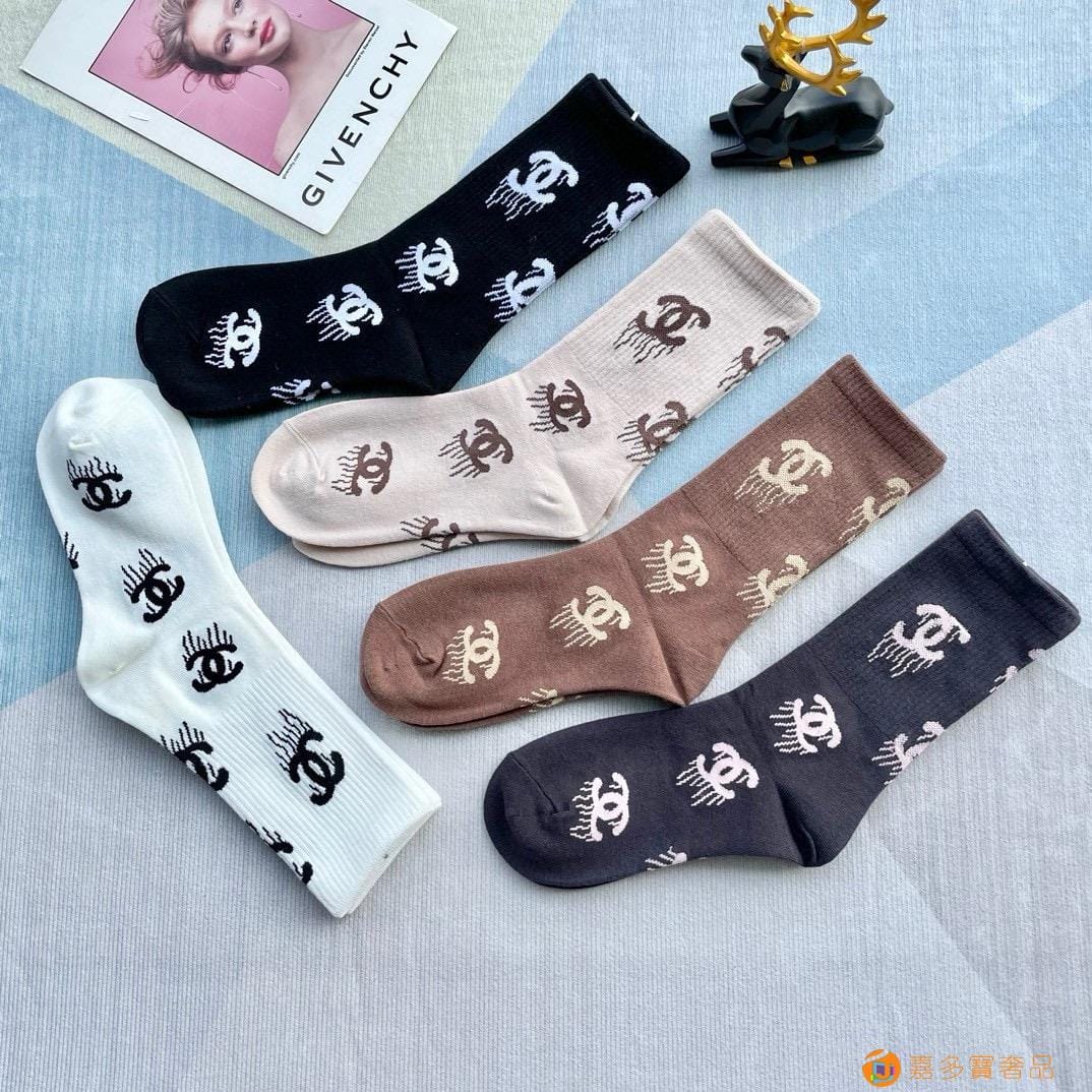 ?配包装(香奈儿)新款中短款堆堆袜袜子!一盒五双,专柜同步筒