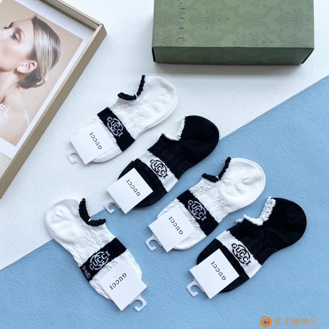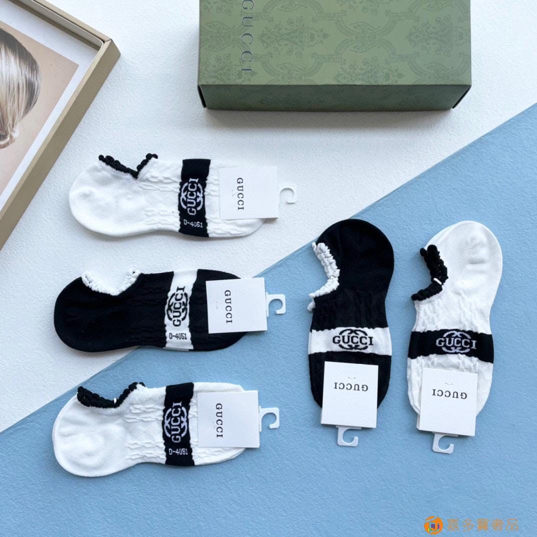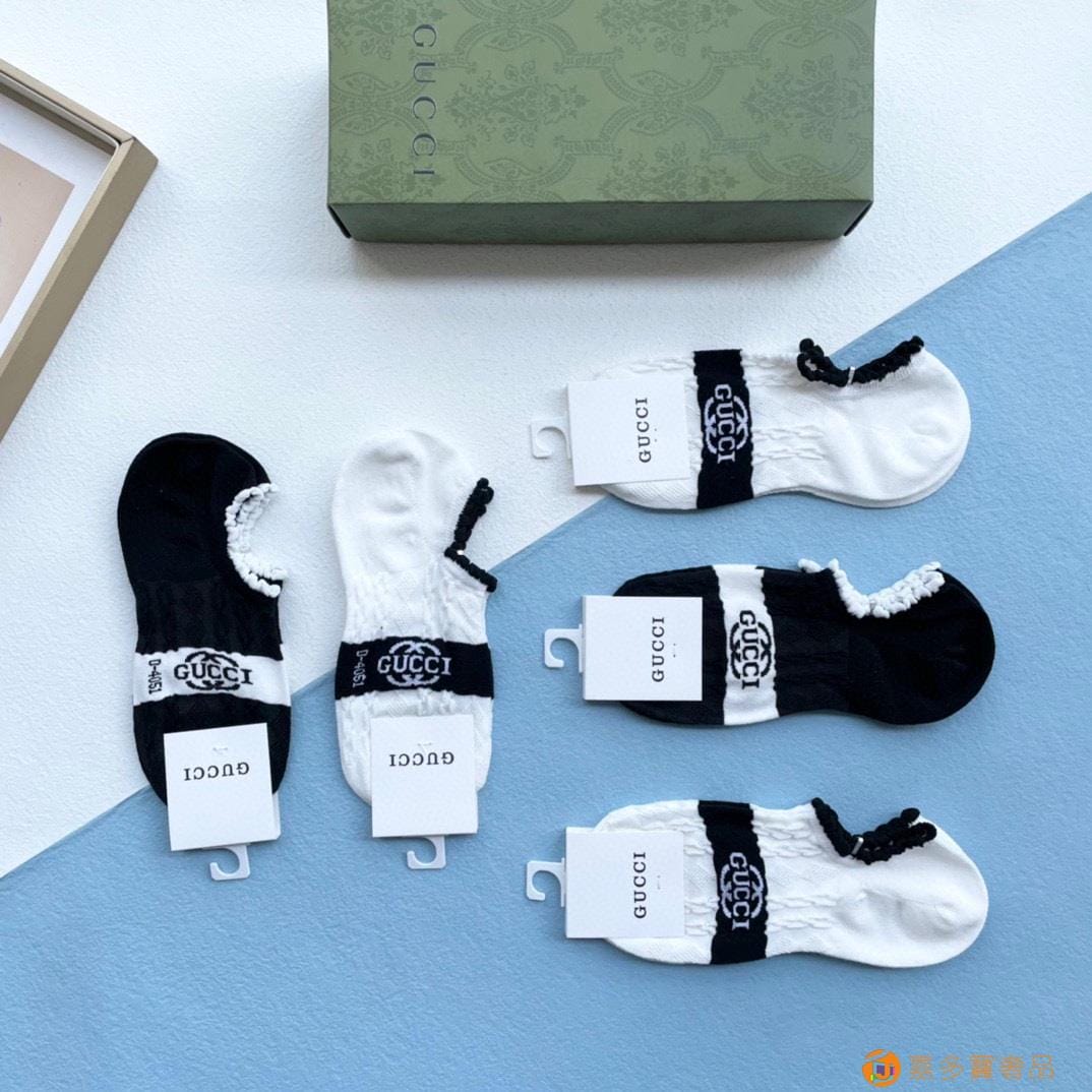 配包装【一盒五双】Gucci · 古奇??G家新品烫金纯黑短