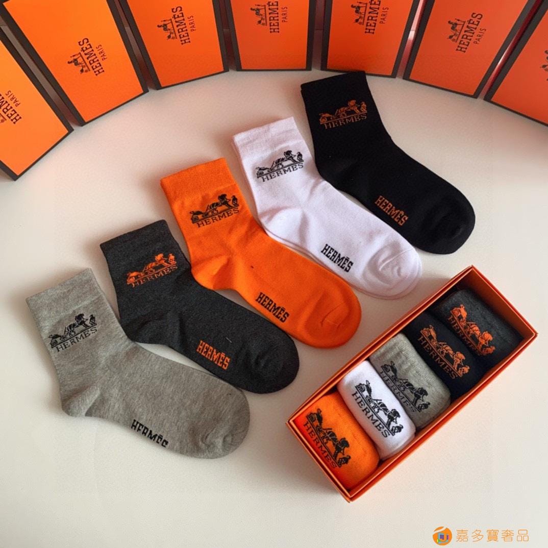 配包装 【一盒五双】HERMER · 爱马仕经典中筒袜子??