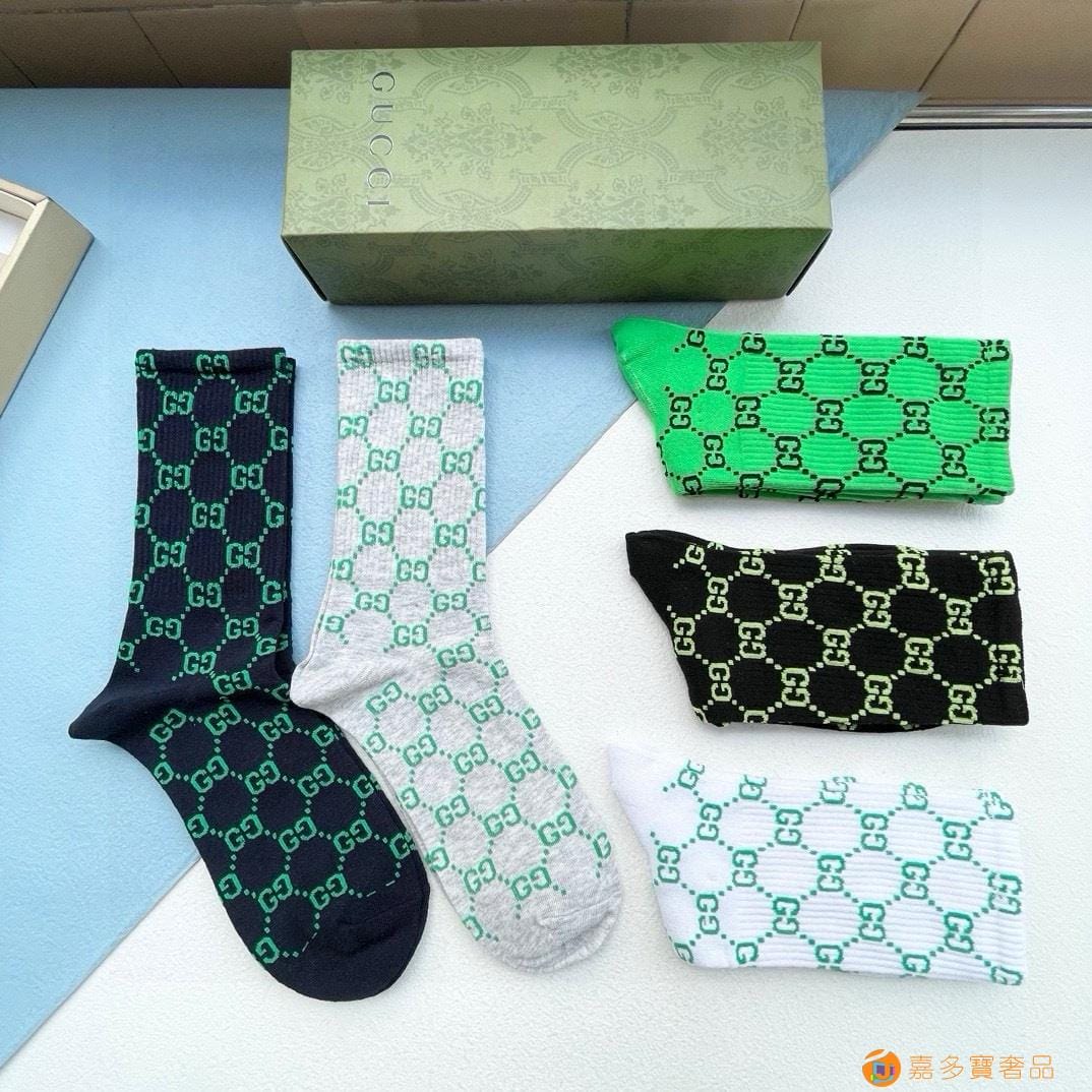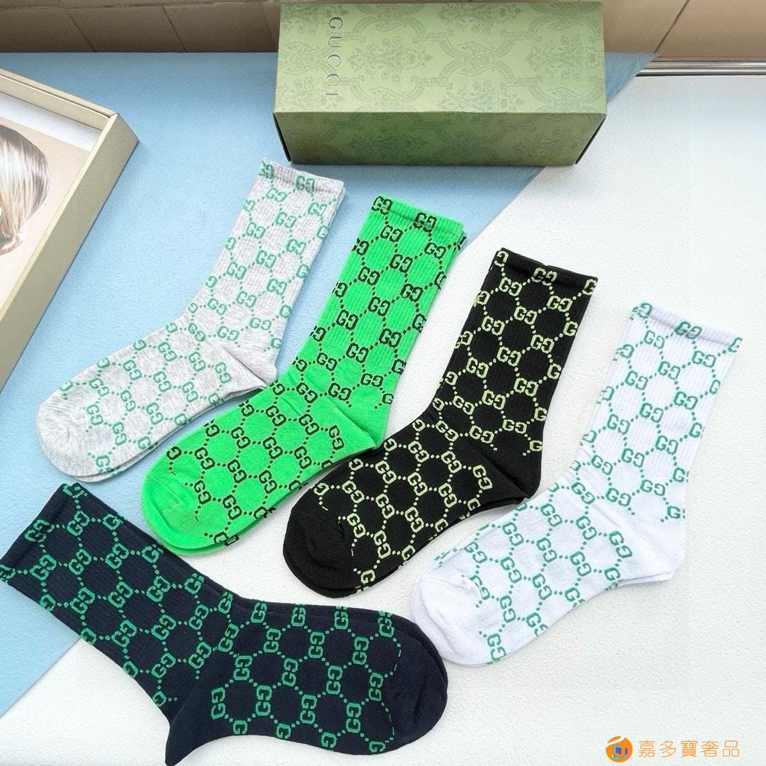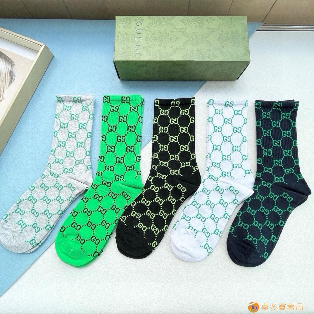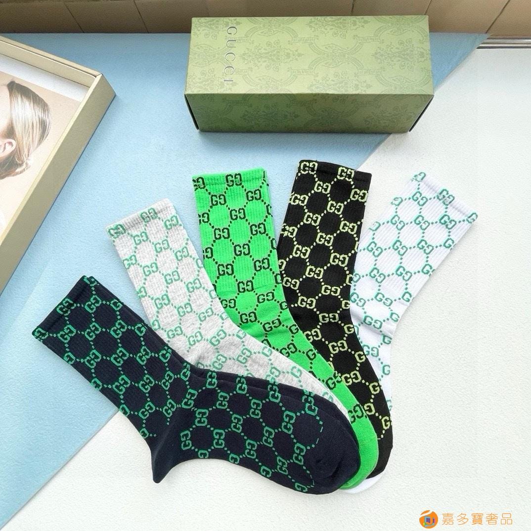 配送包装【一盒五双】 古奇gucci专柜新款男女款中筒袜子