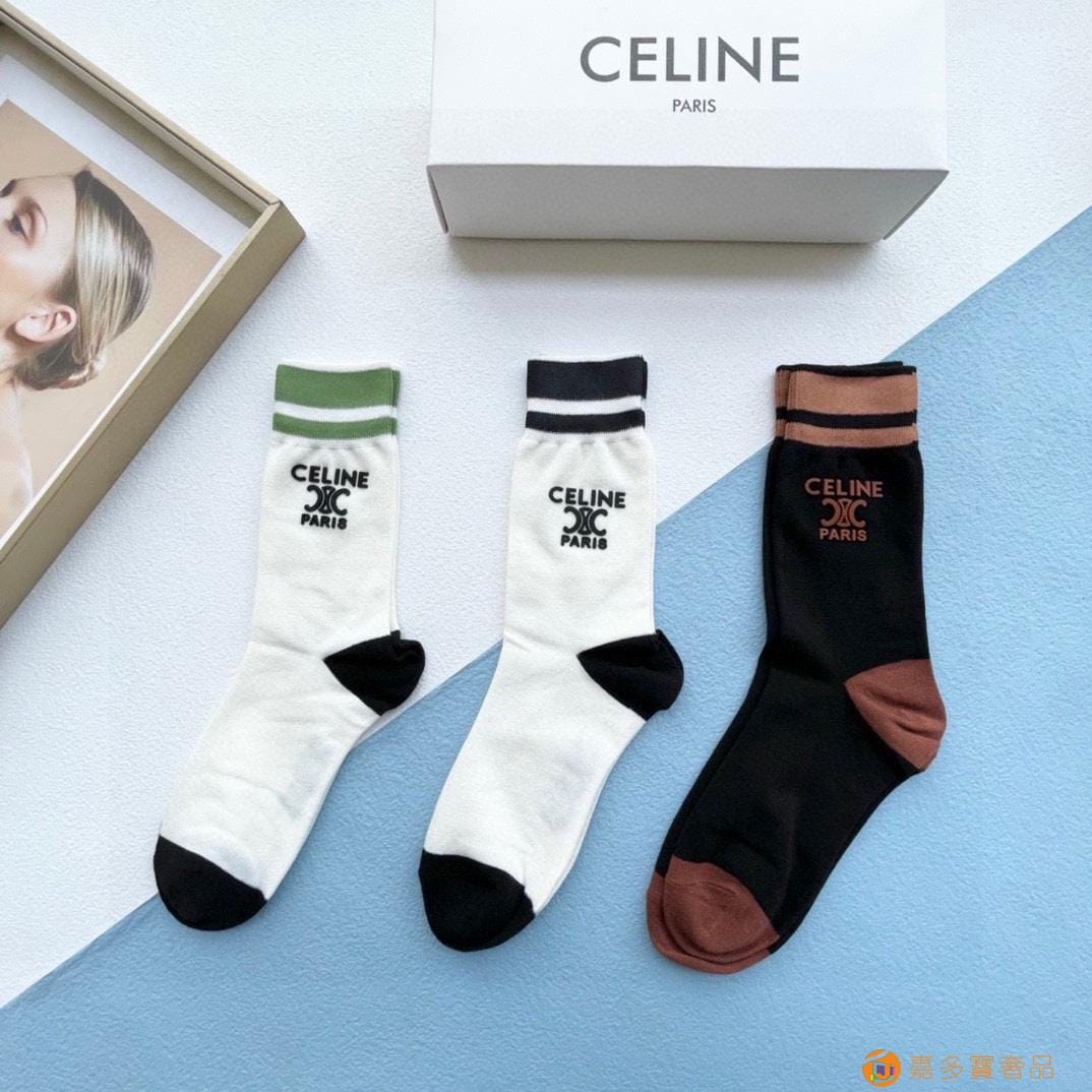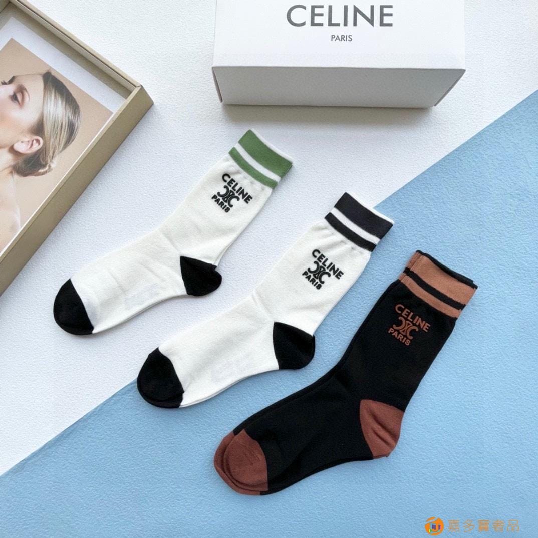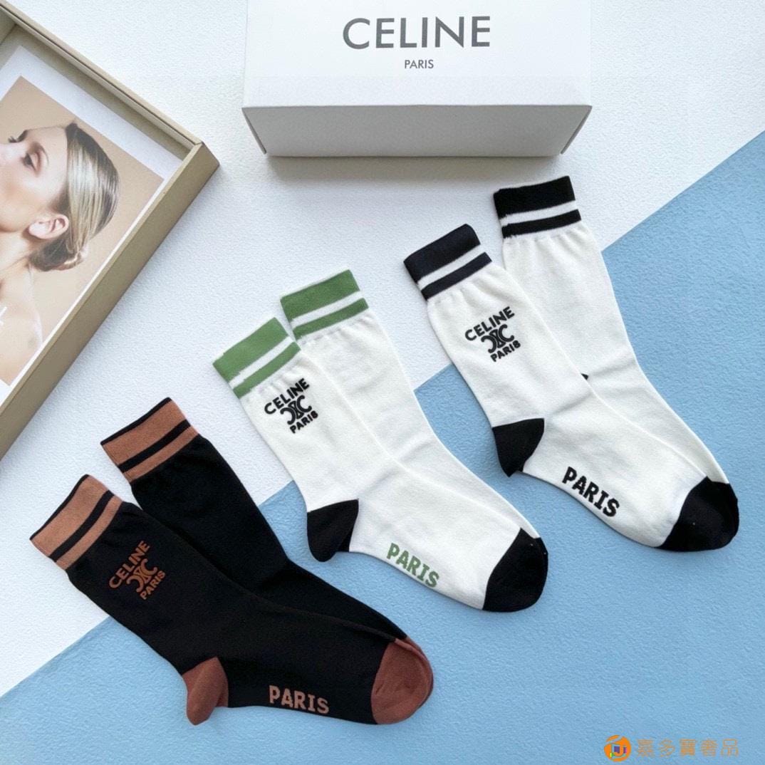 配包装【一盒三双】?Celine赛琳 爆款中筒袜?高版本