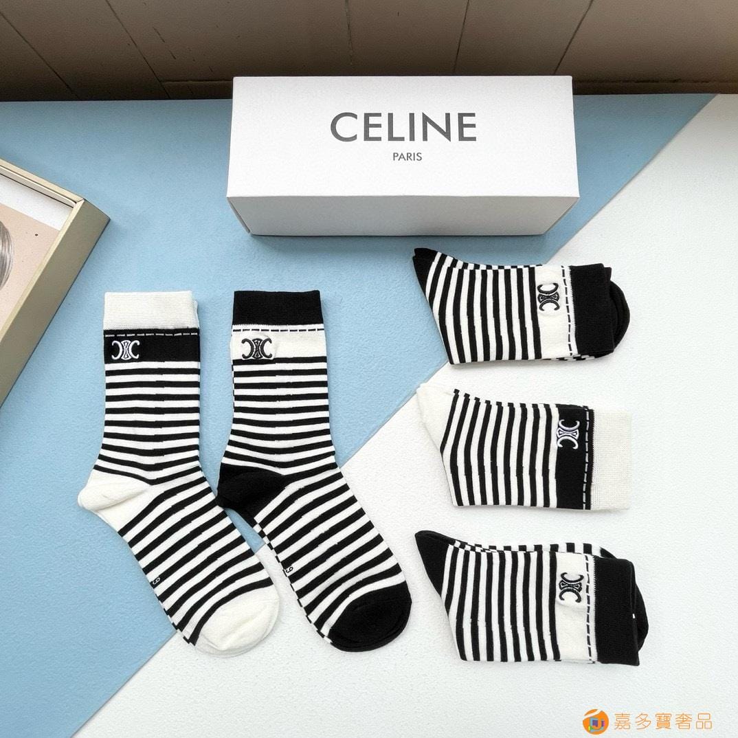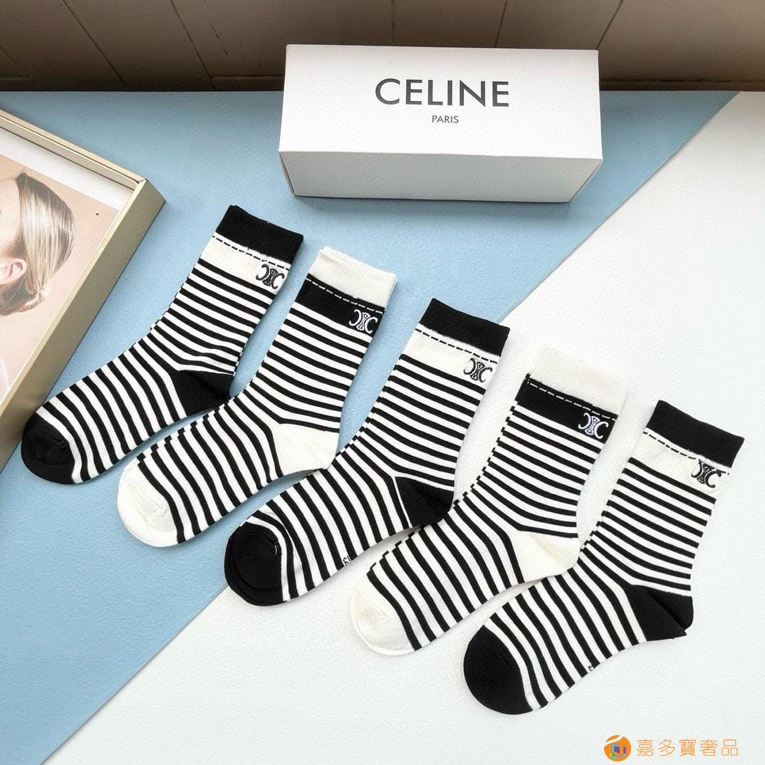 配包装【一盒三双】?Celine赛琳 爆款中筒袜?高版本