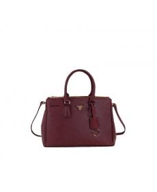 PRADA普拉达/经典十字纹/梅红色/女士真皮手提包/单肩包 1801