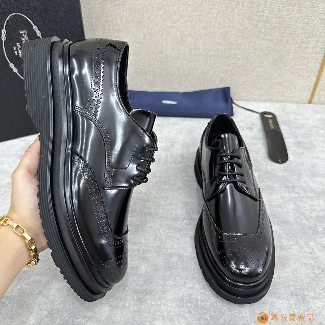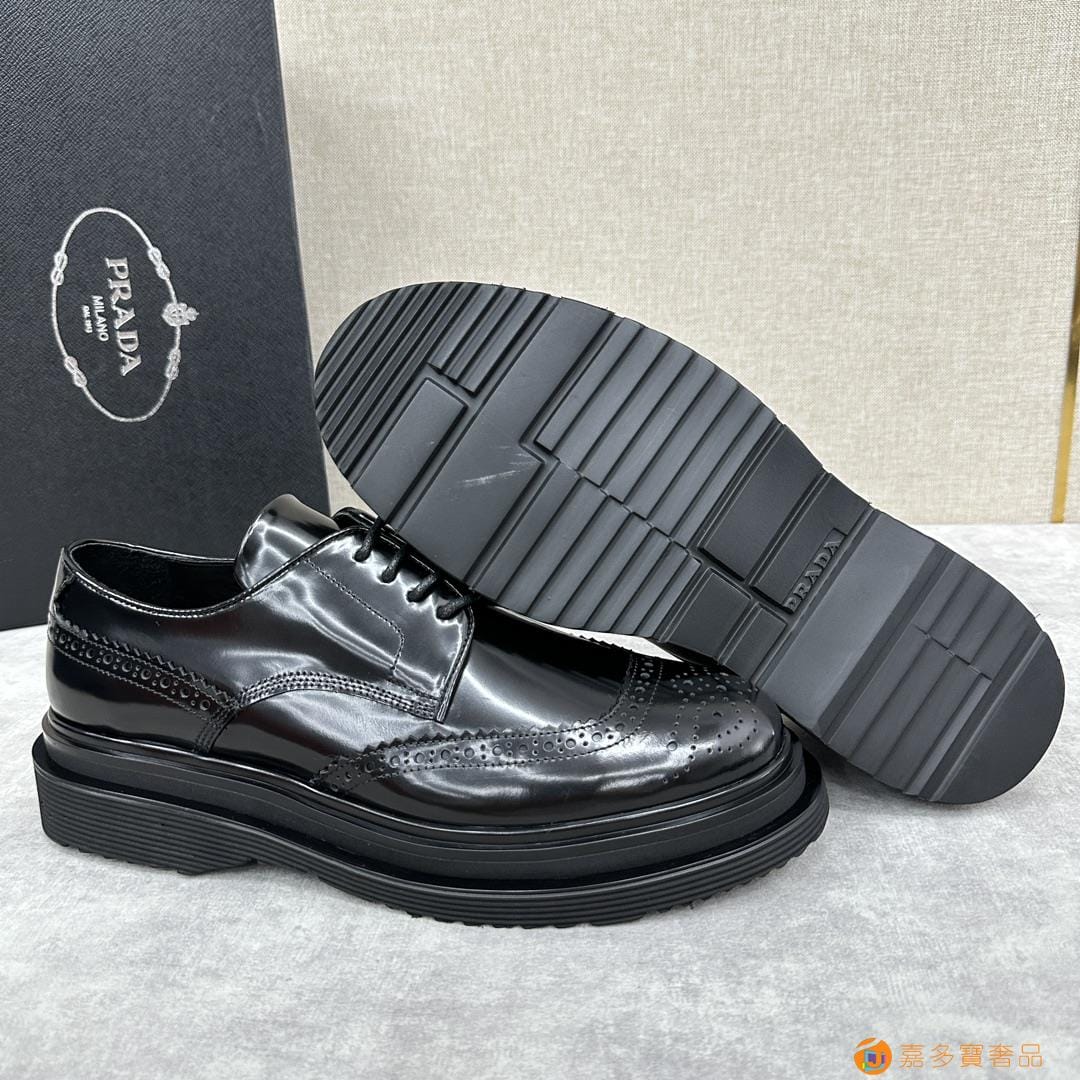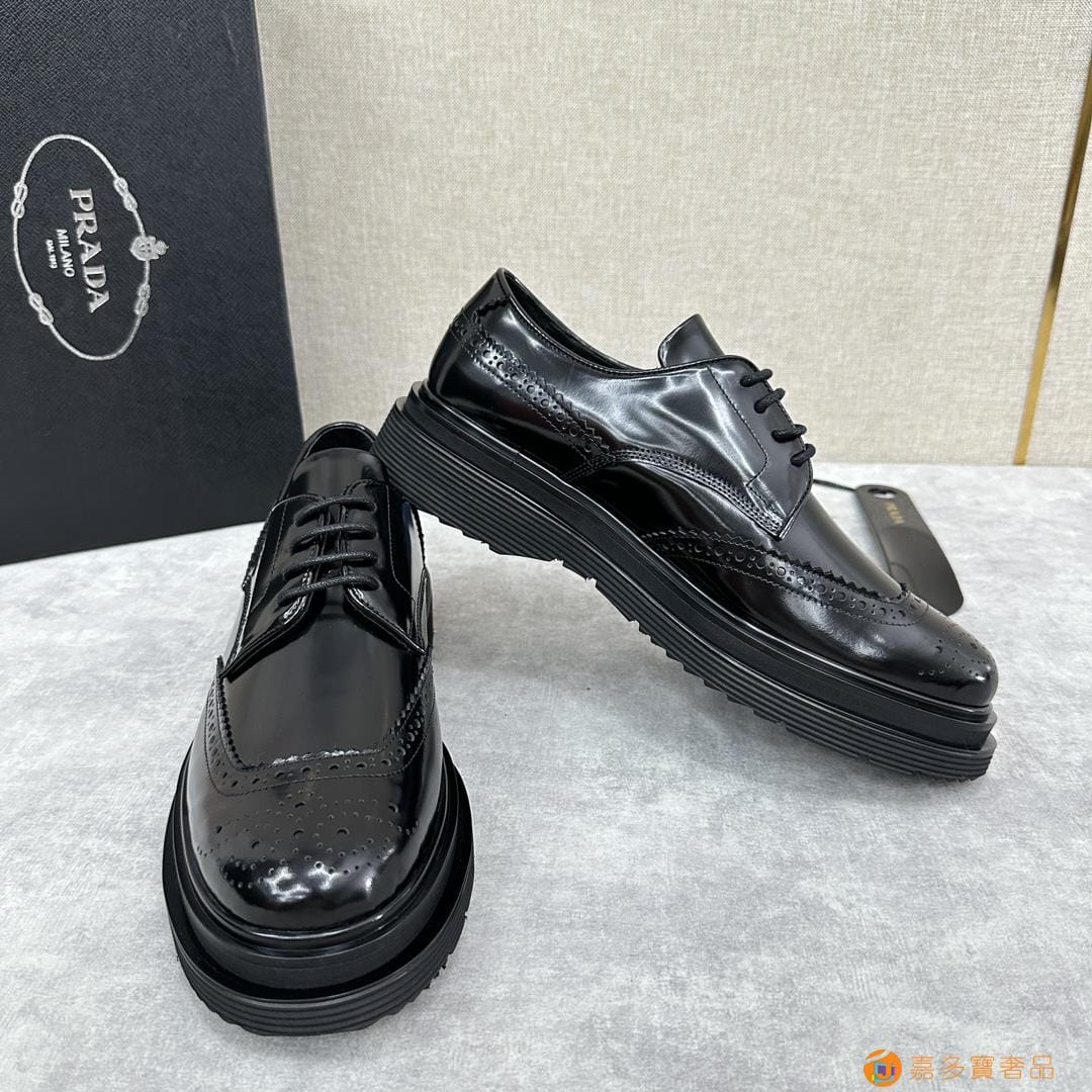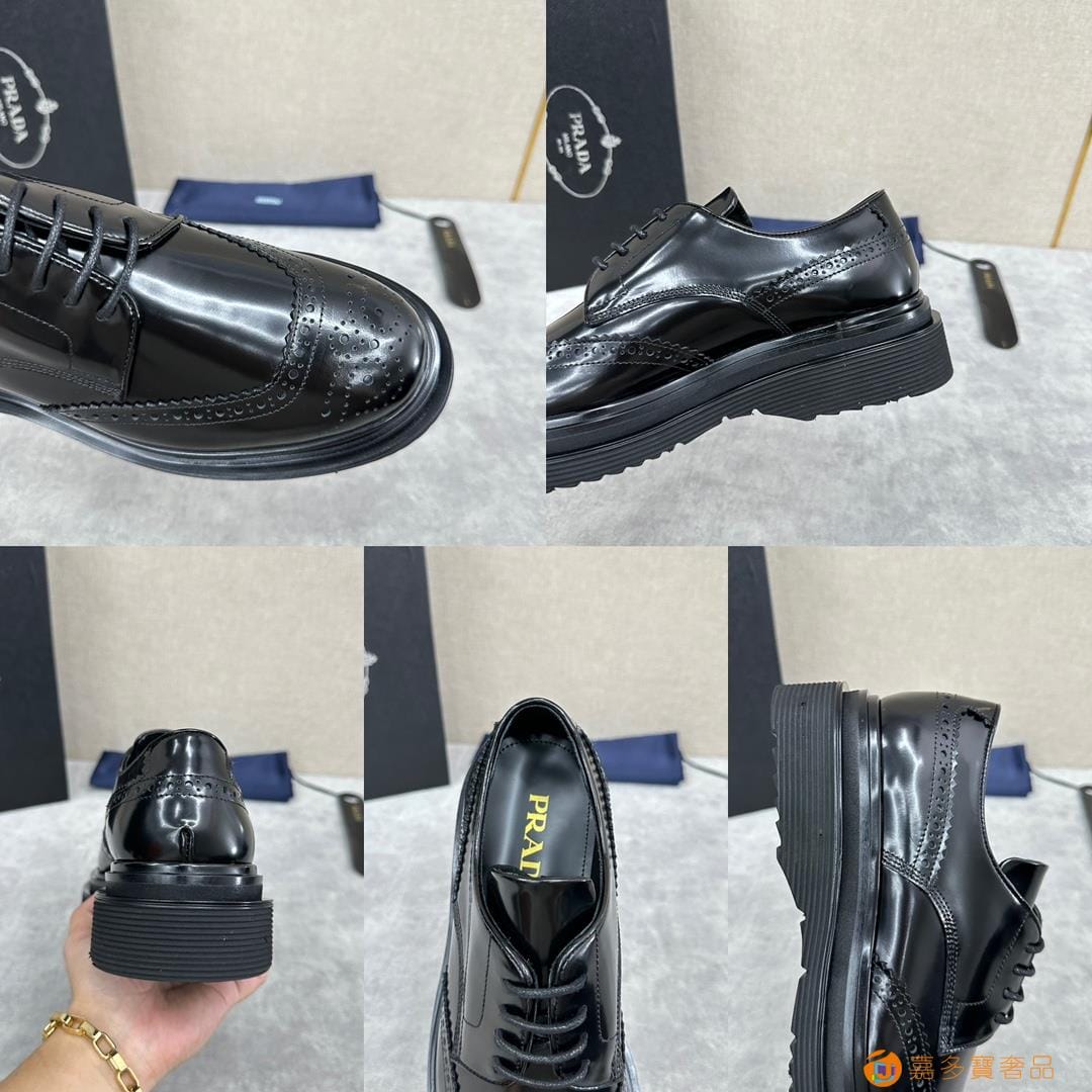 . ??家 普拉达 经典男士布洛克德比鞋 厚底皮鞋来袭 意