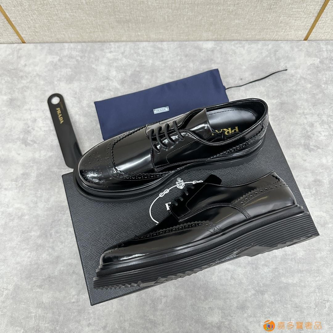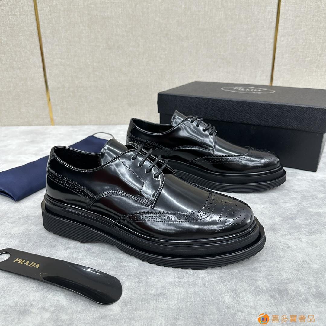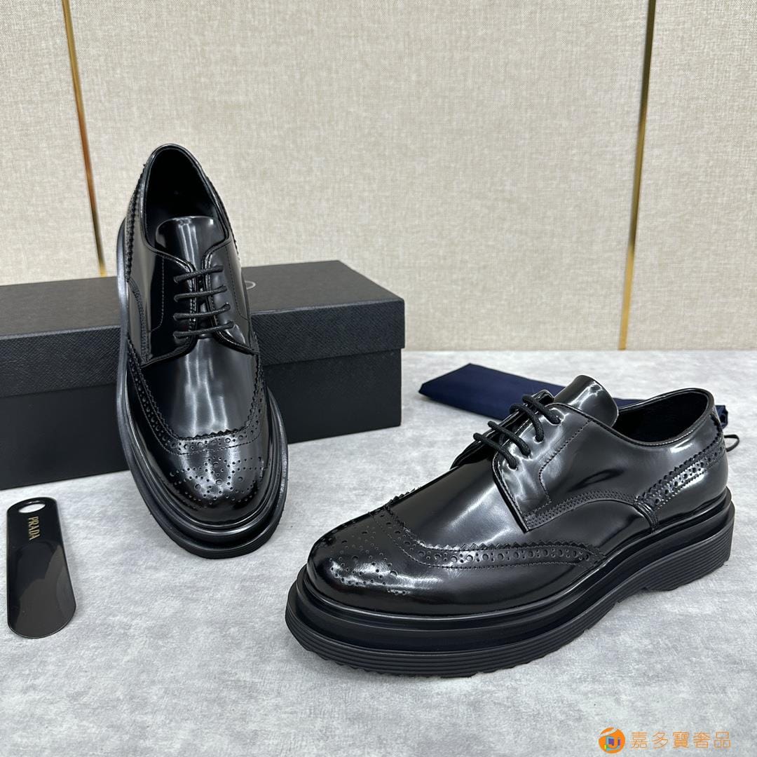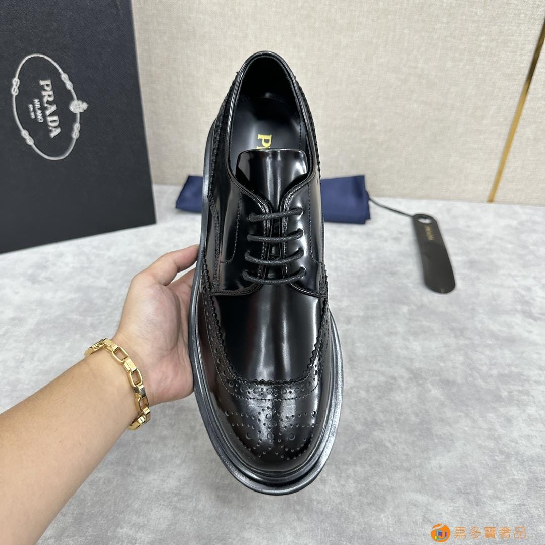 . ??家 普拉达 经典男士布洛克德比鞋 厚底皮鞋来袭 意