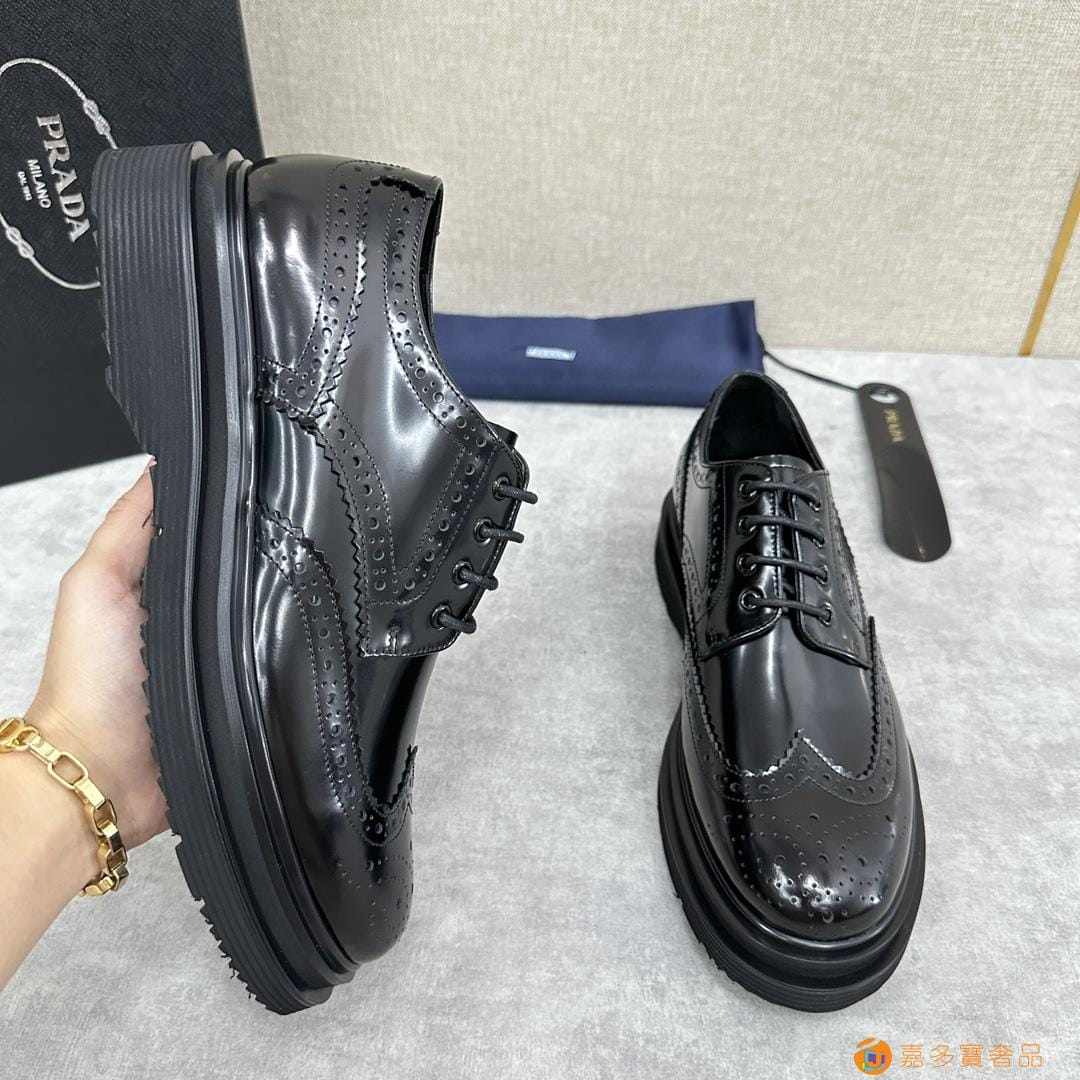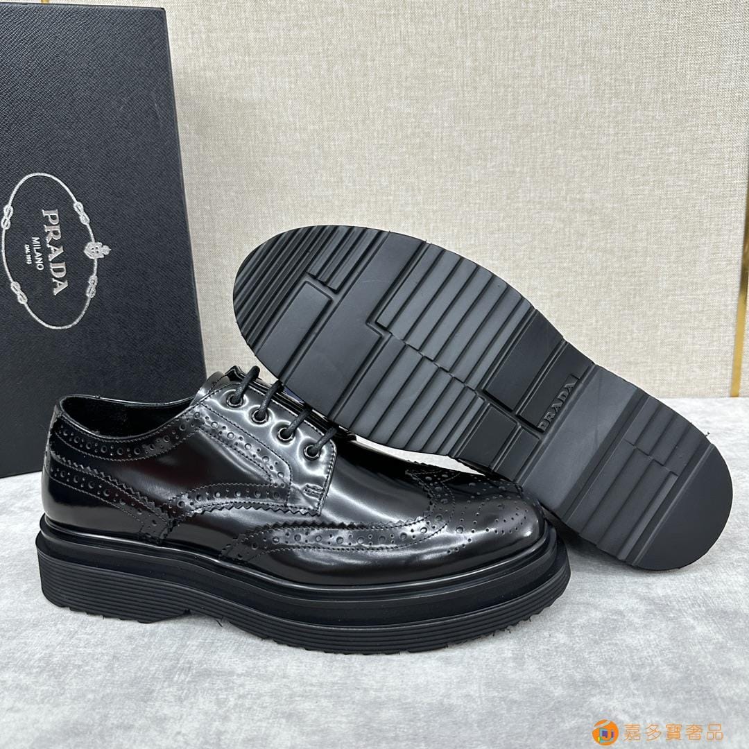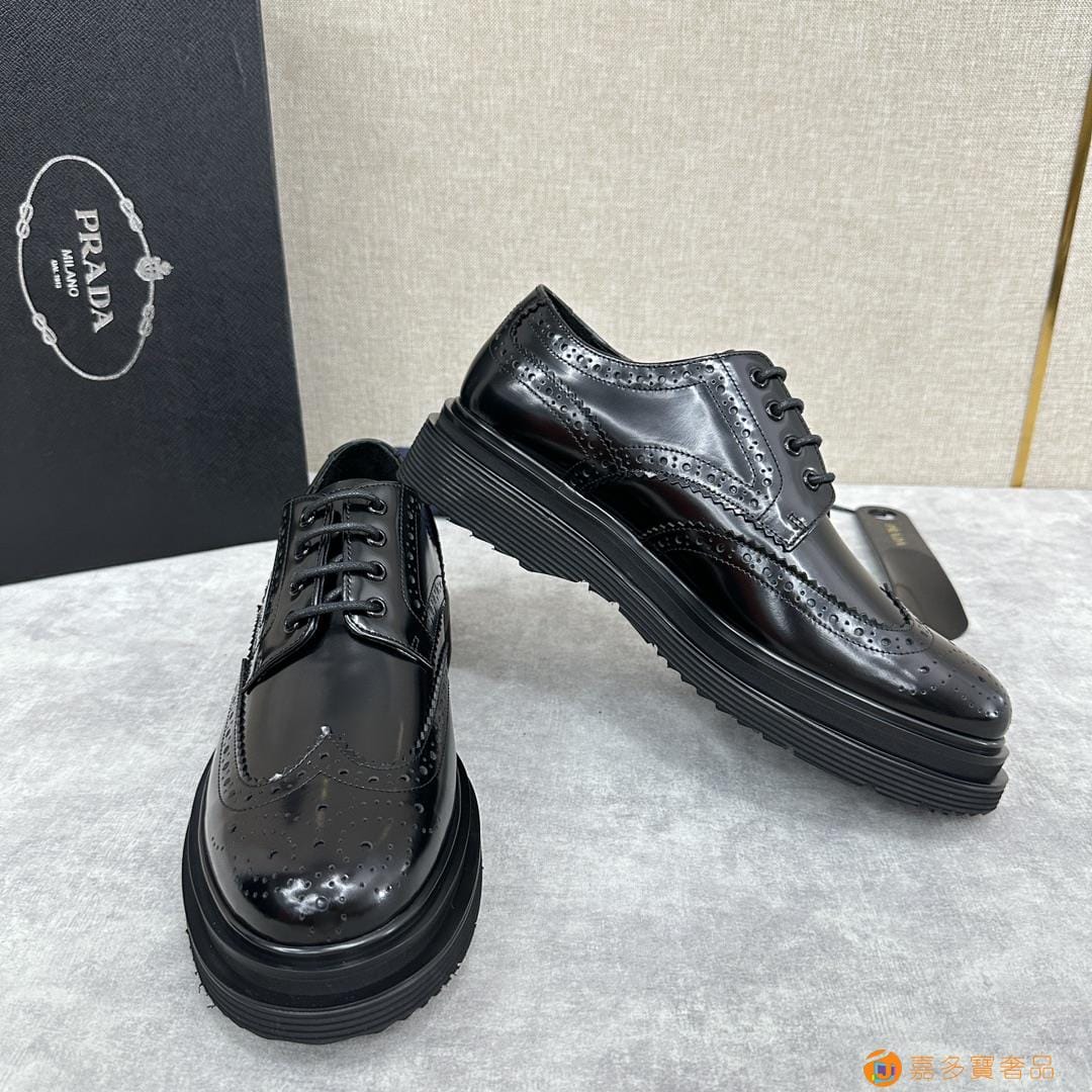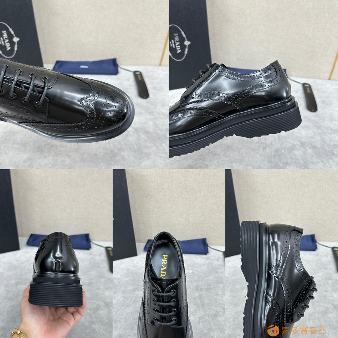 . ??家 普拉达 经典男士布洛克德比鞋 厚底皮鞋来袭 意