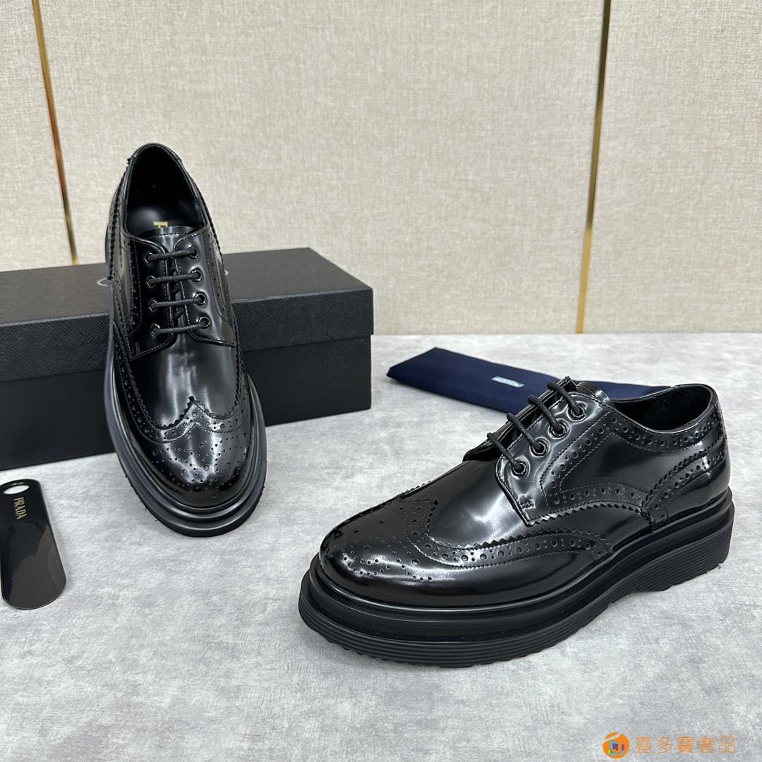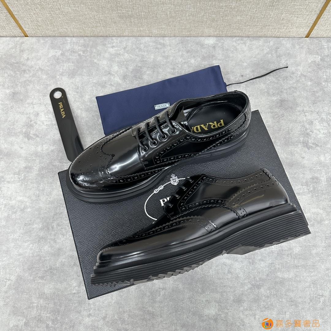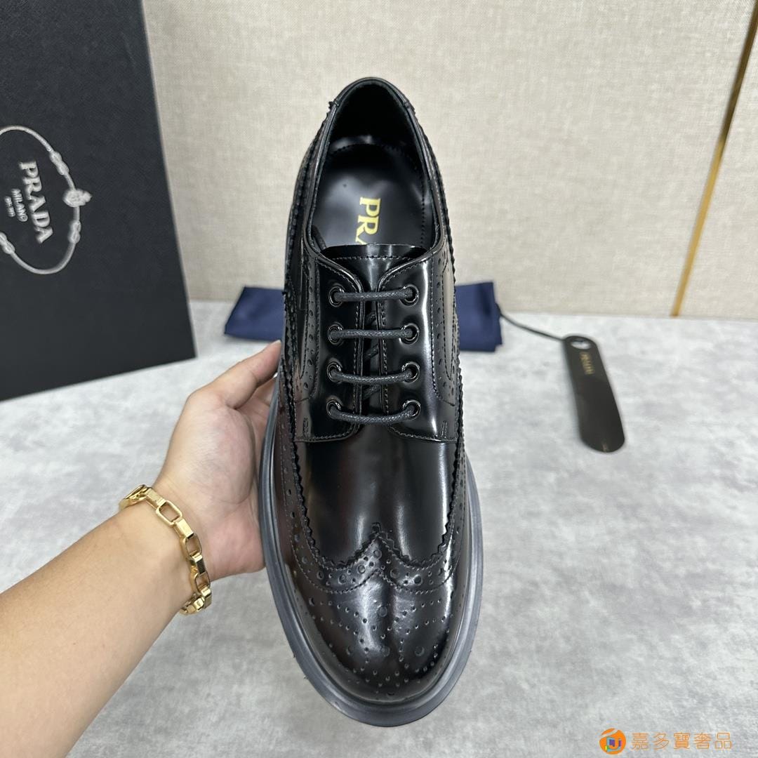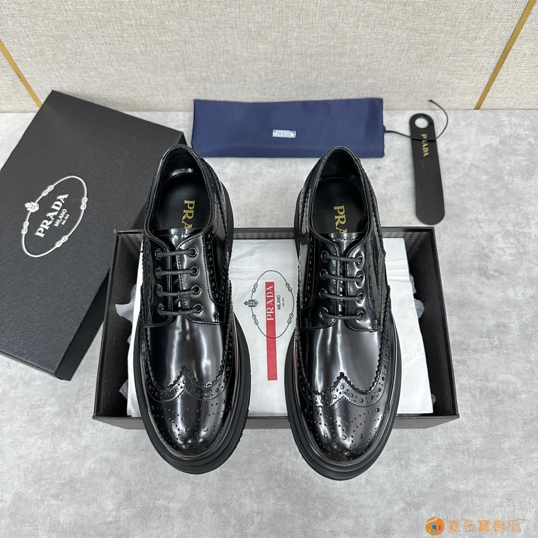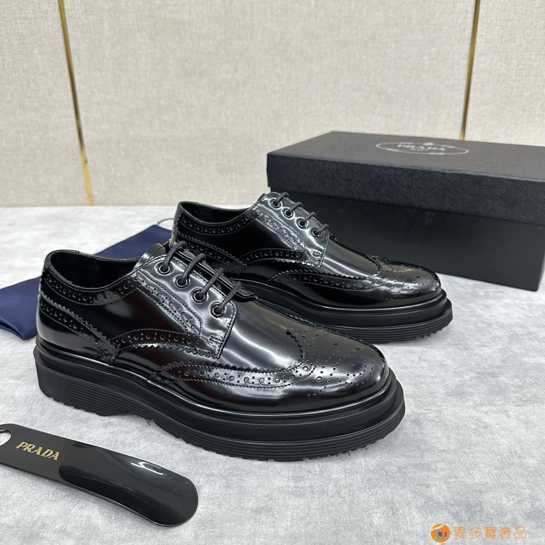 . ??家 普拉达 经典男士布洛克德比鞋 厚底皮鞋来袭 意