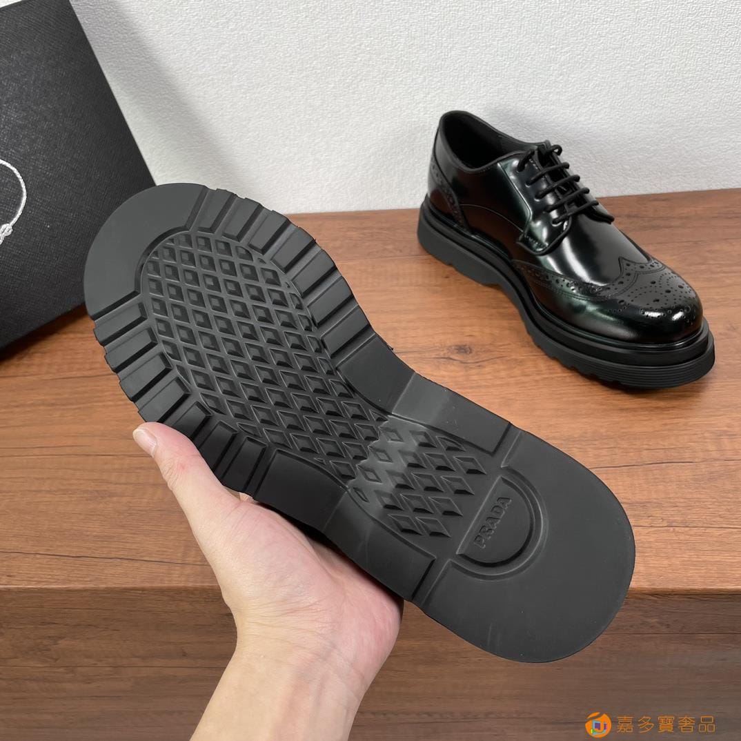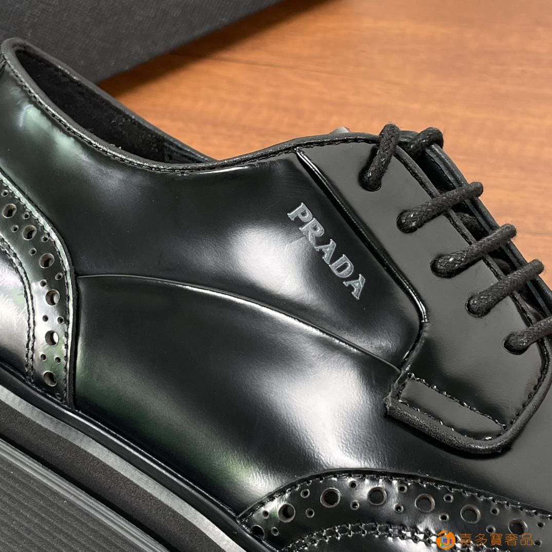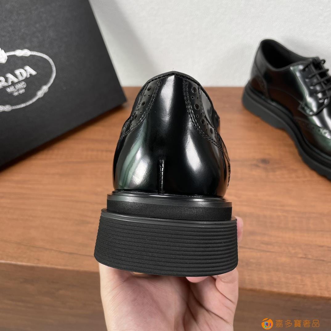 . ??家 普拉达 经典男士布洛克德比鞋 厚底皮鞋来袭 意
