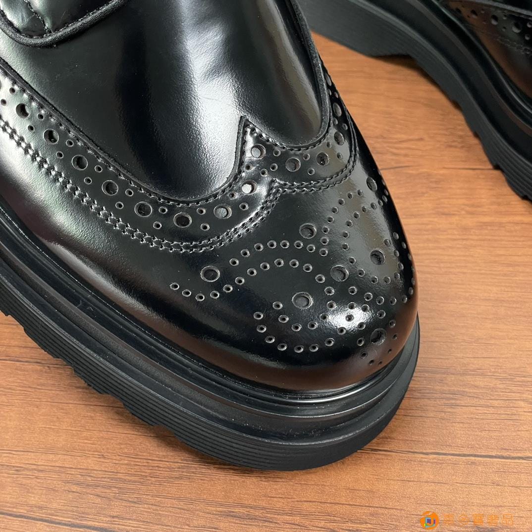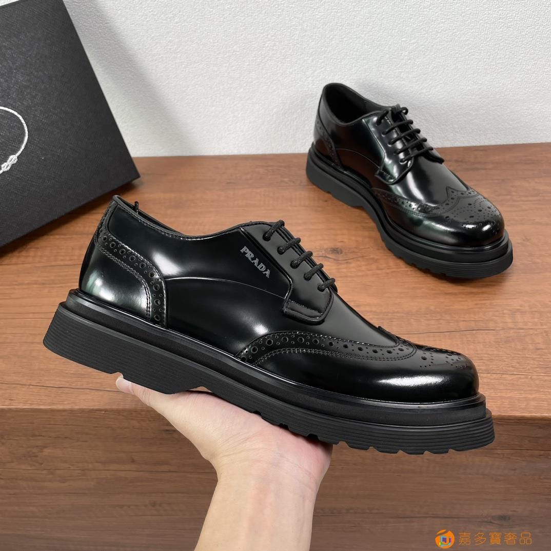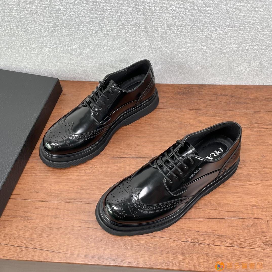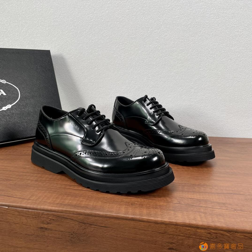 . ??家 普拉达 经典男士布洛克德比鞋 厚底皮鞋来袭 意