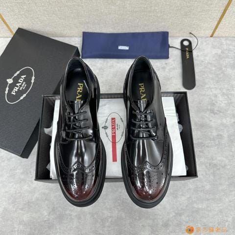 . ??家 普拉达 经典男士布洛克德比鞋 厚底皮鞋来袭 意