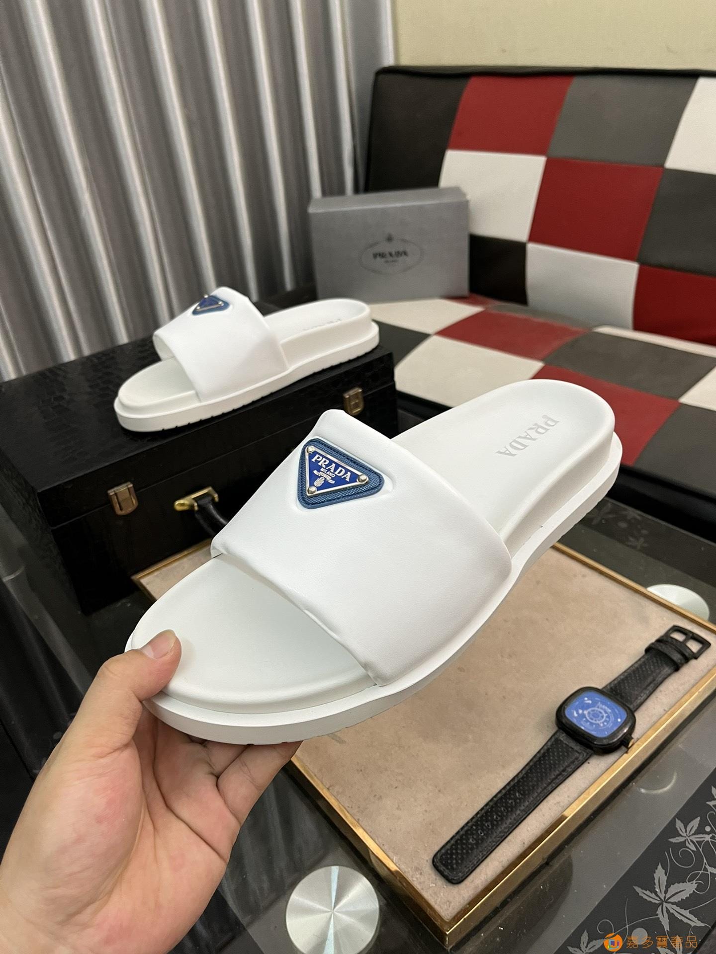 :????(RADR-普拉达)奢牌休闲拖鞋,进口原版羊皮,羊