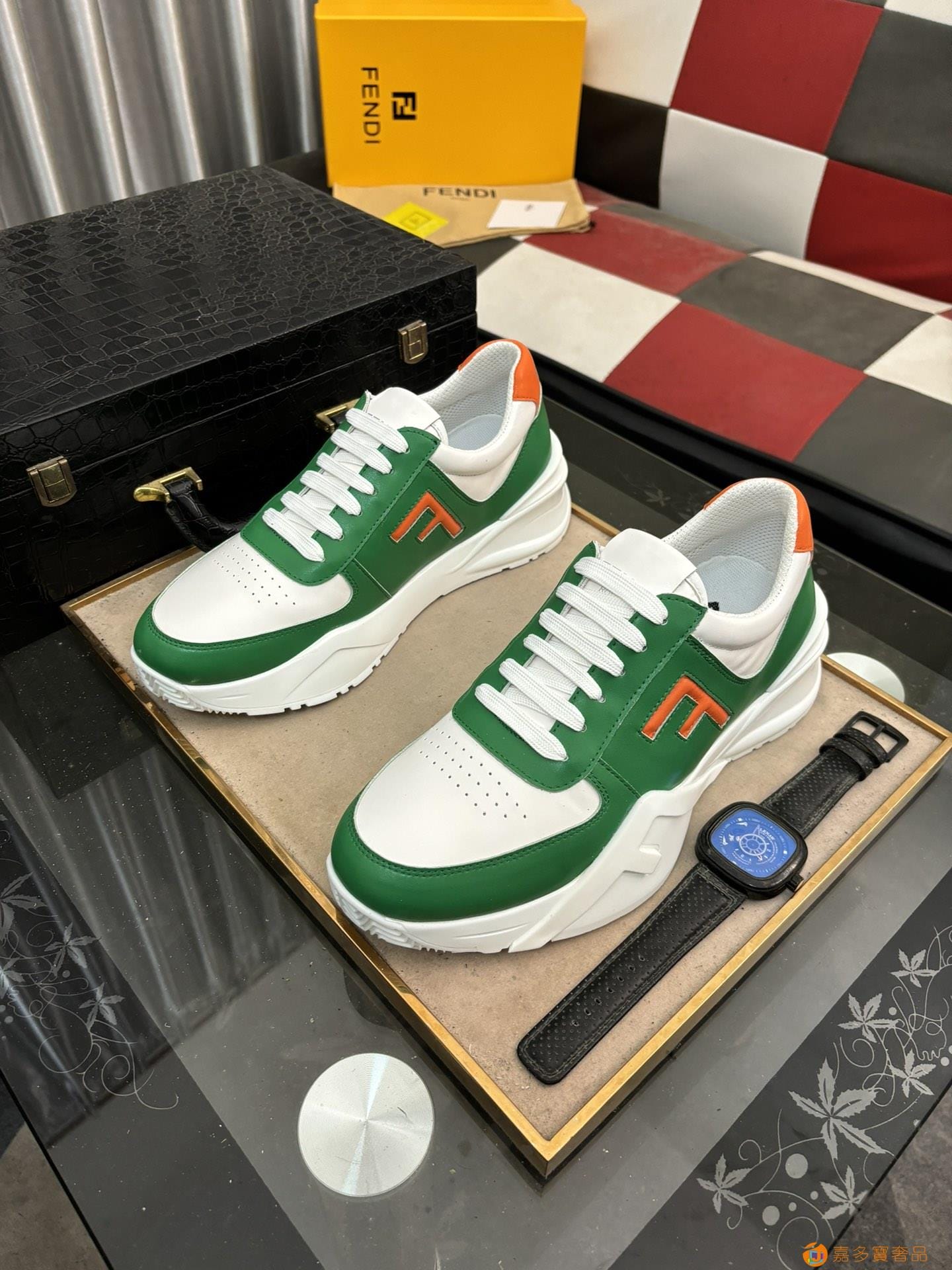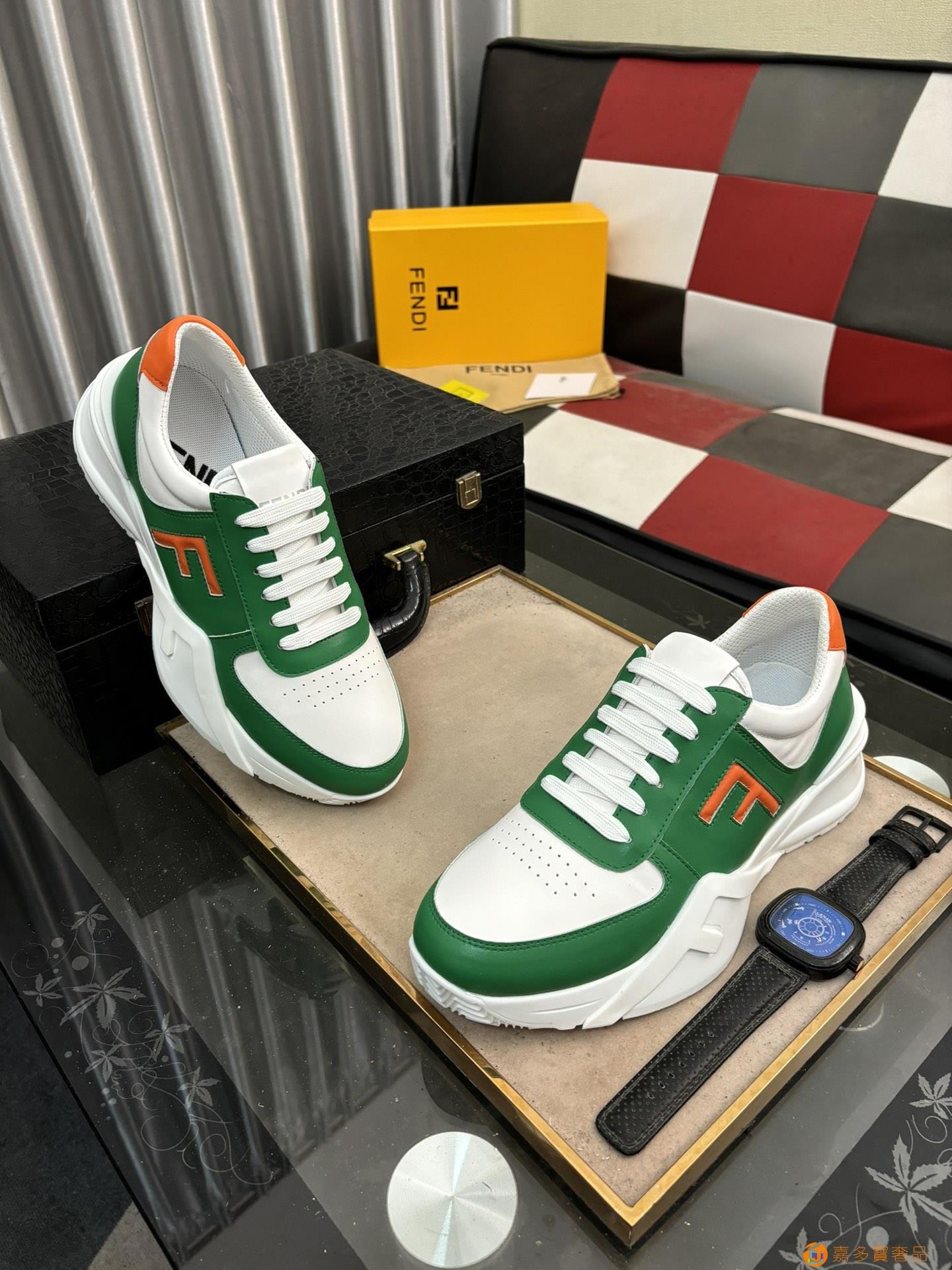 :??【FENDI】芬迪经典舒适男士,这款复杂的运动鞋是由柔