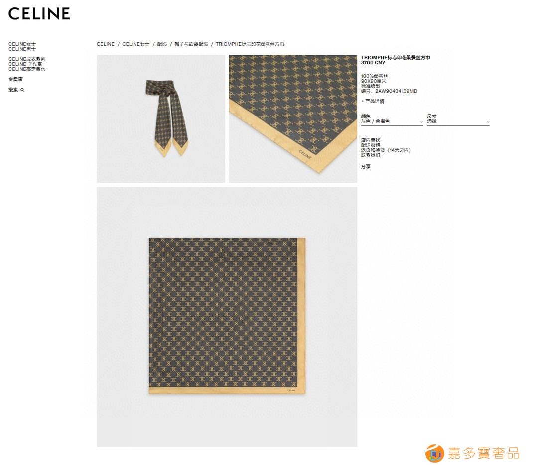 ??????瑟琳CELINE标志】高端定制,双面同色真丝方巾