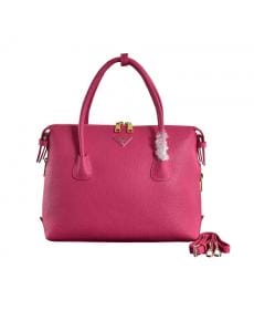 PRADA普拉达/时尚荔枝纹/玫红色/女士真皮手提包/单肩包 0890