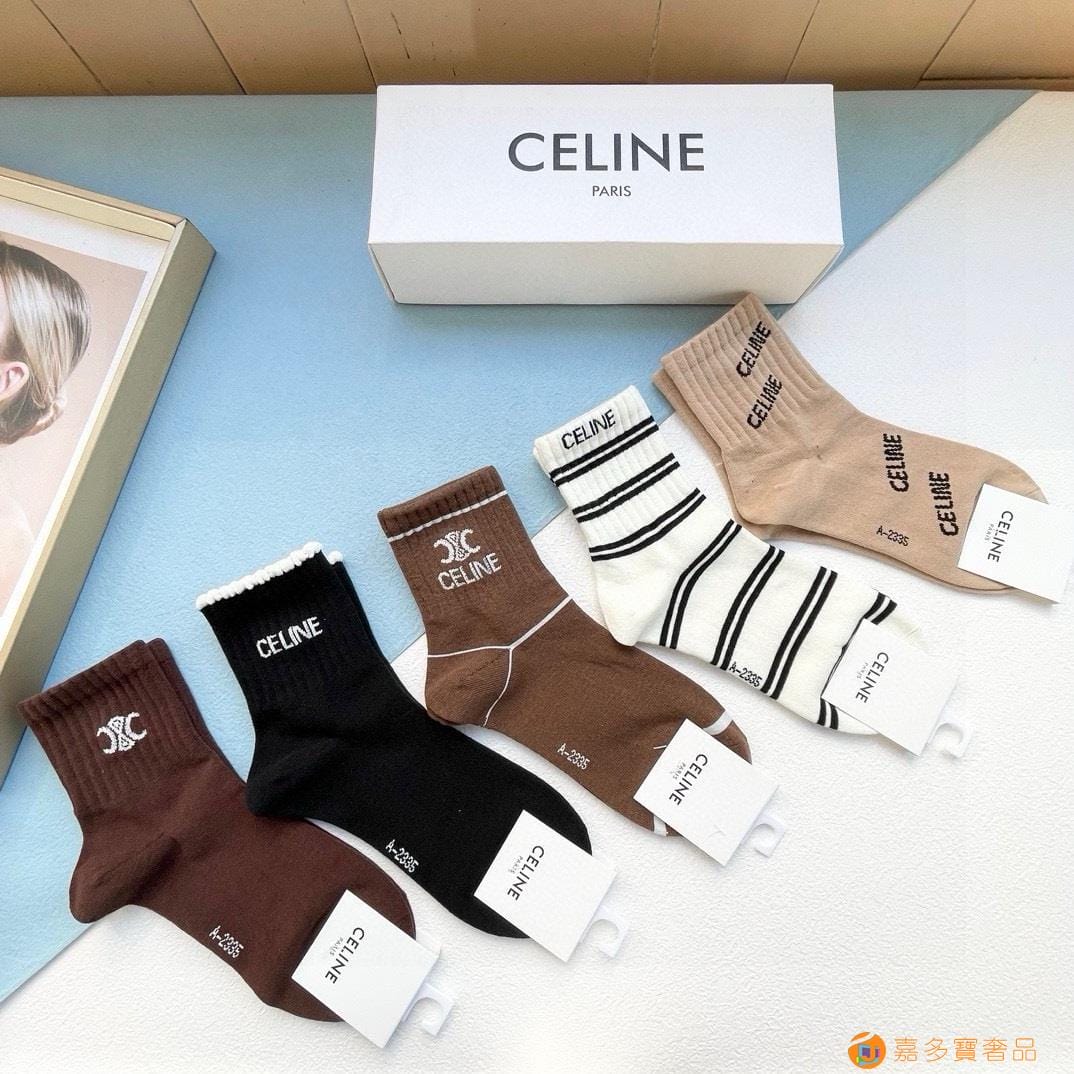 配包装【一盒五双】?Celine赛琳 爆款中筒袜?高版本