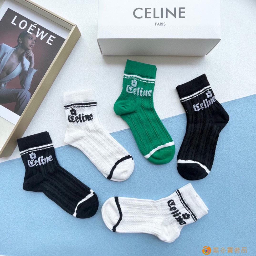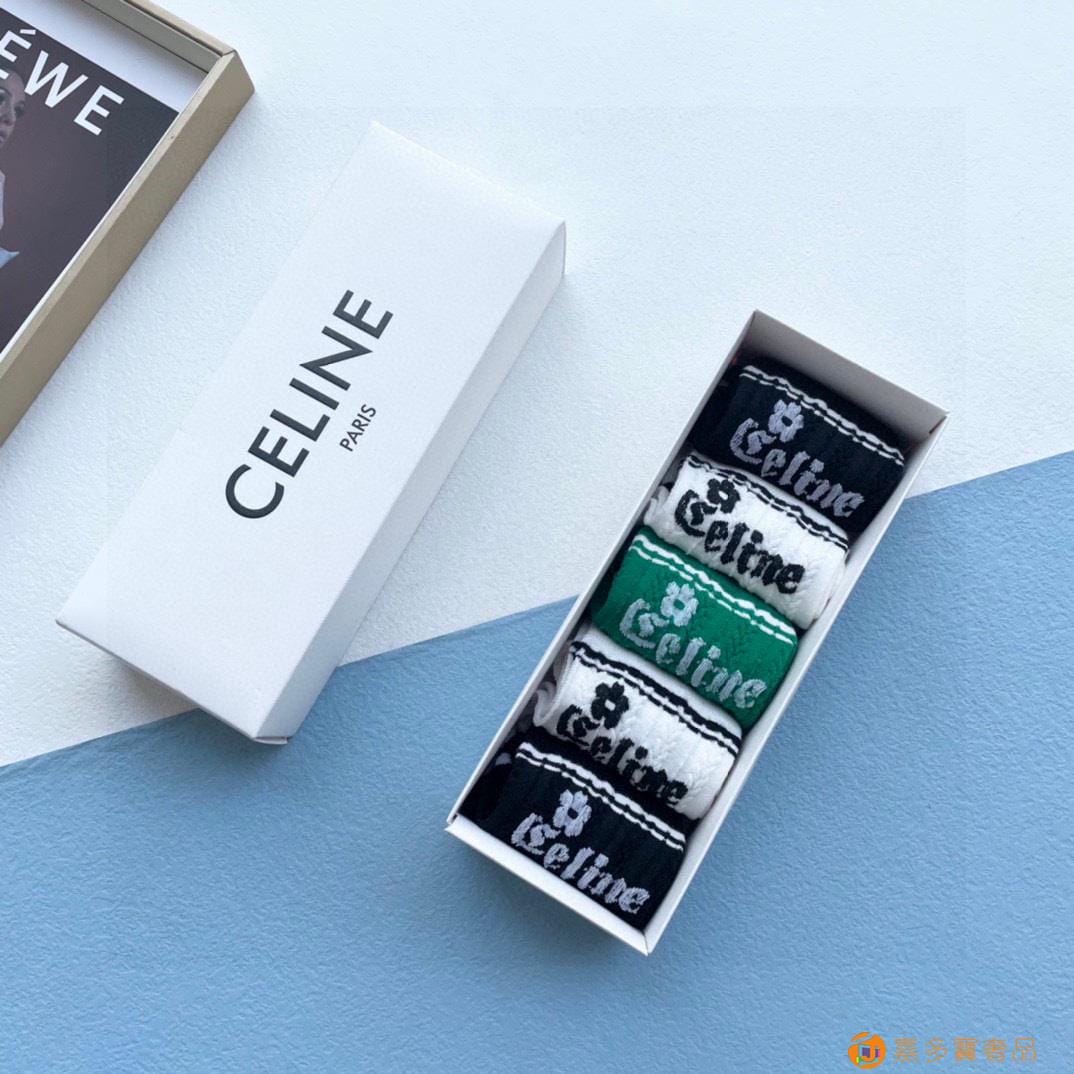 配包装【一盒五双】?Celine赛琳 爆款中筒袜?高版本