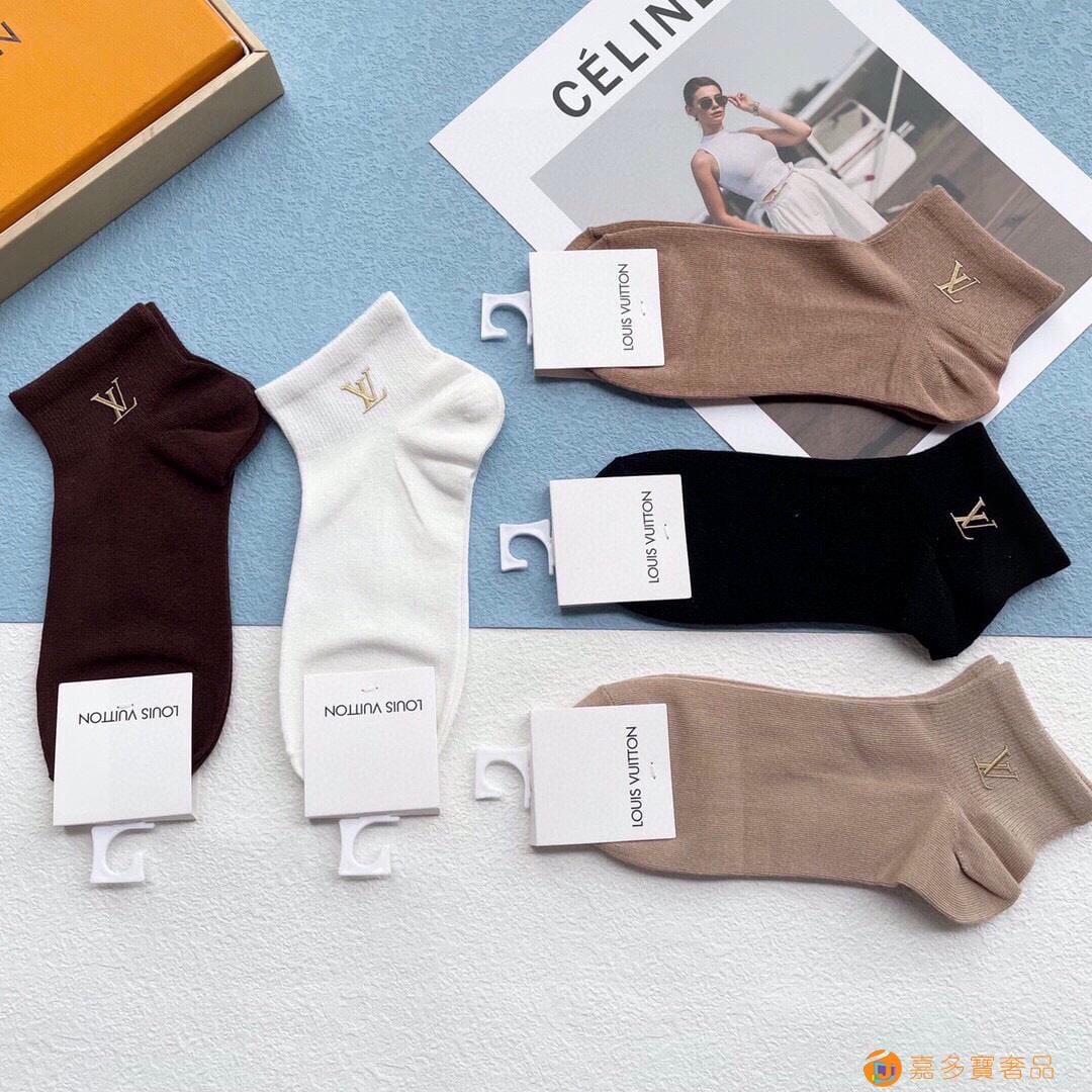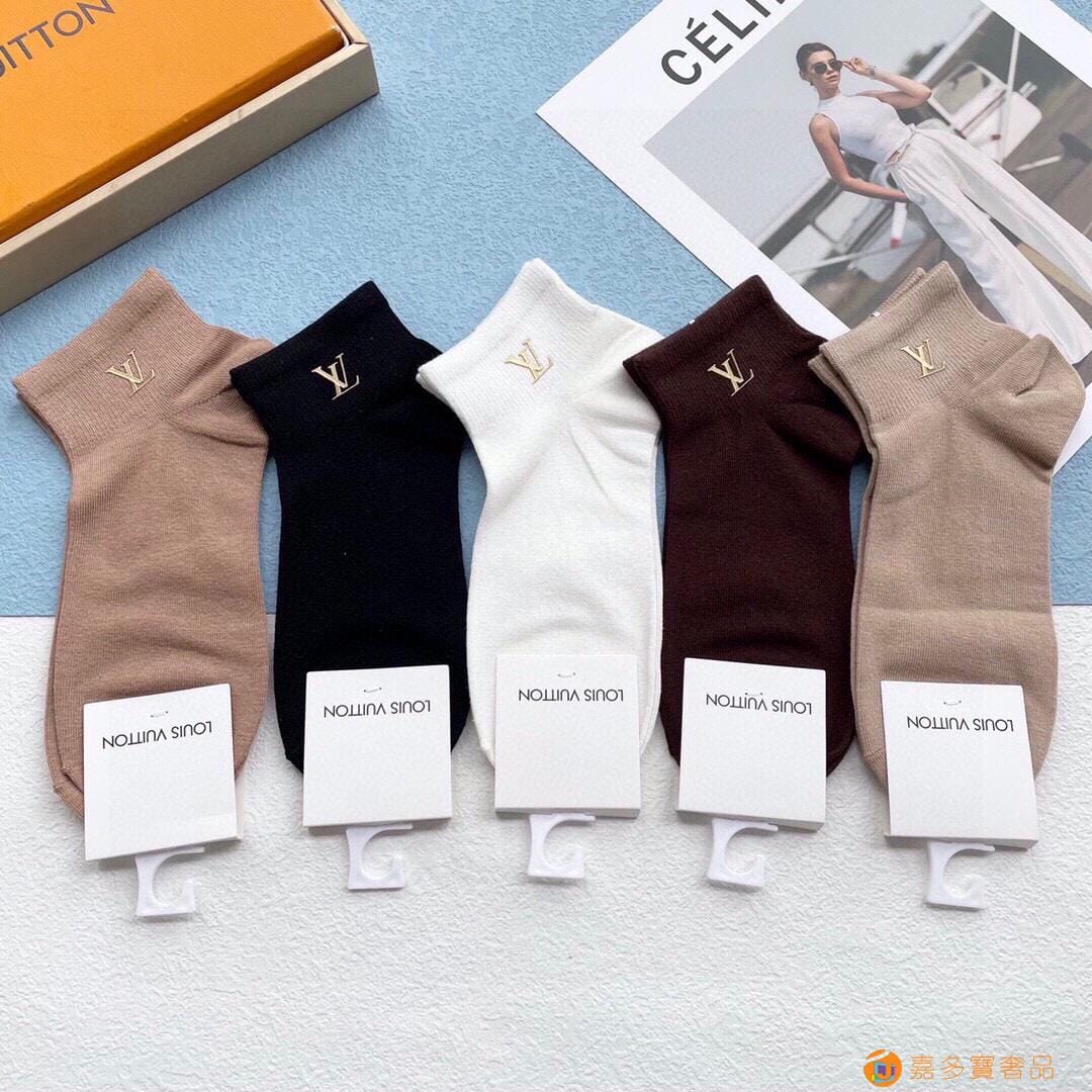 配包装【一盒五双】LV · 路易威登??L家新品烫金短筒女款