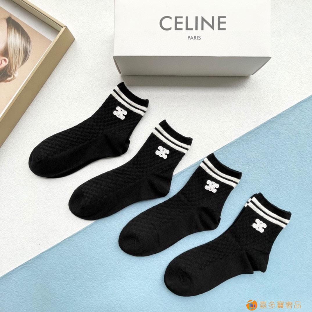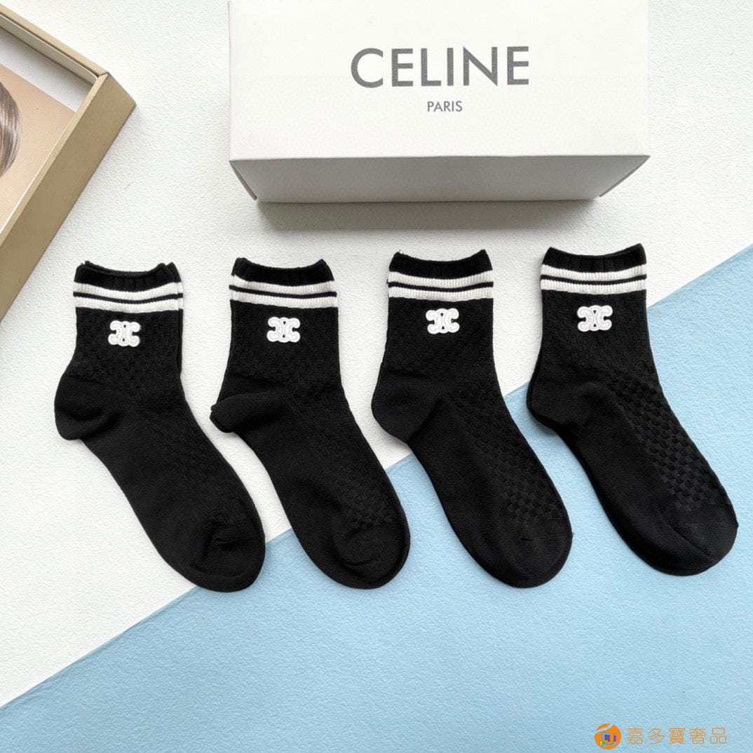 配包装【一盒四双】?Celine赛琳 爆款中筒袜?高版本
