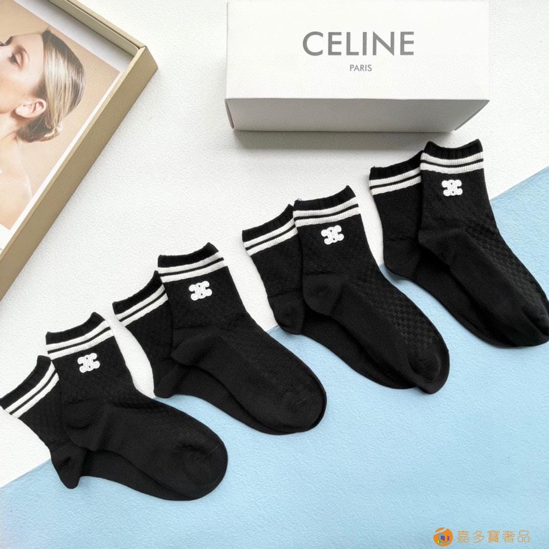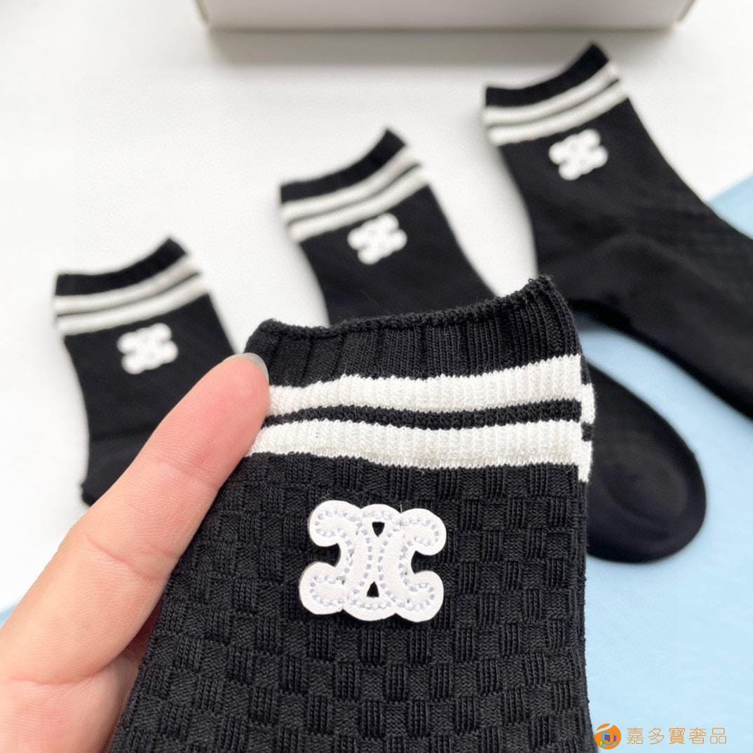 配包装【一盒五双】?Celine赛琳 爆款中筒袜?高版本