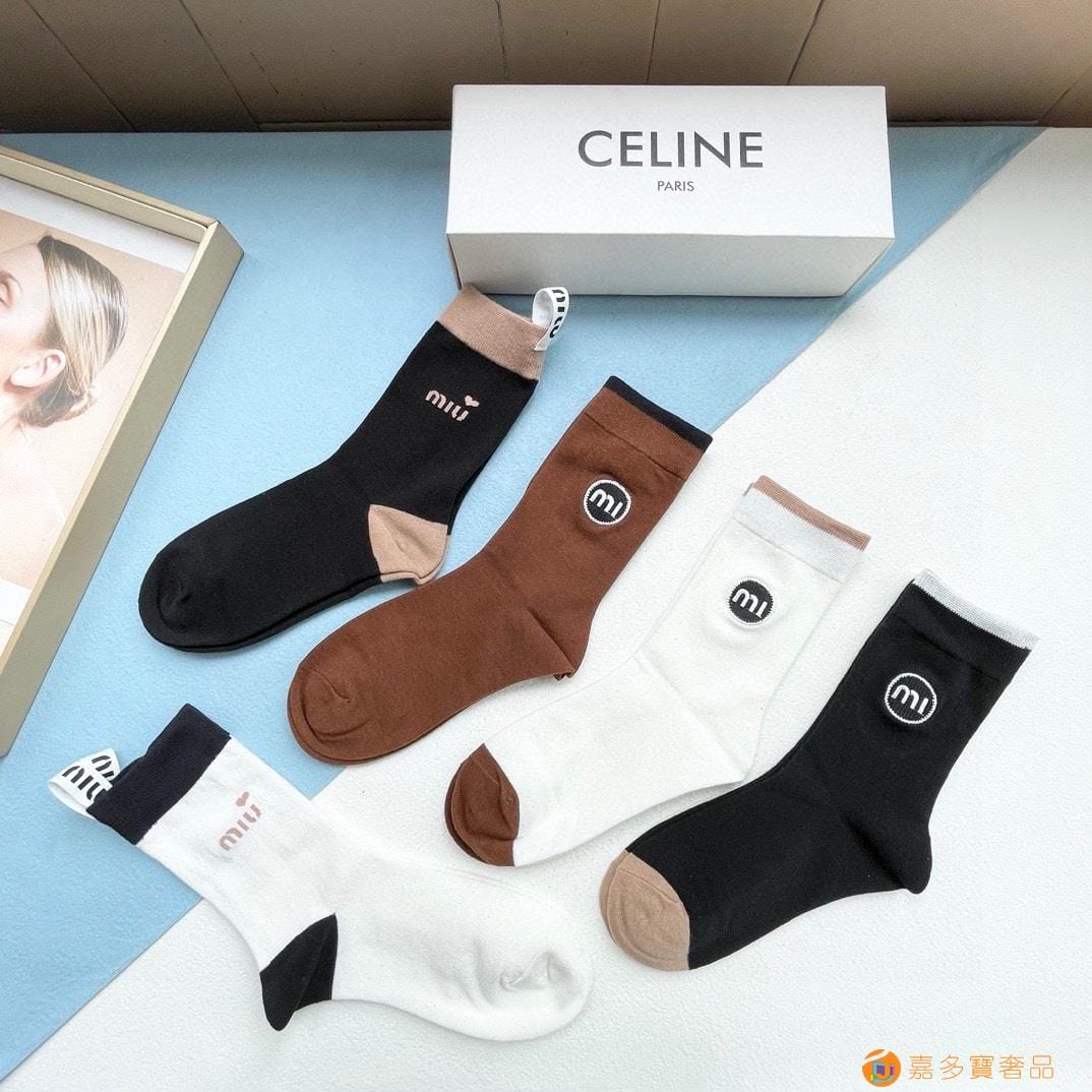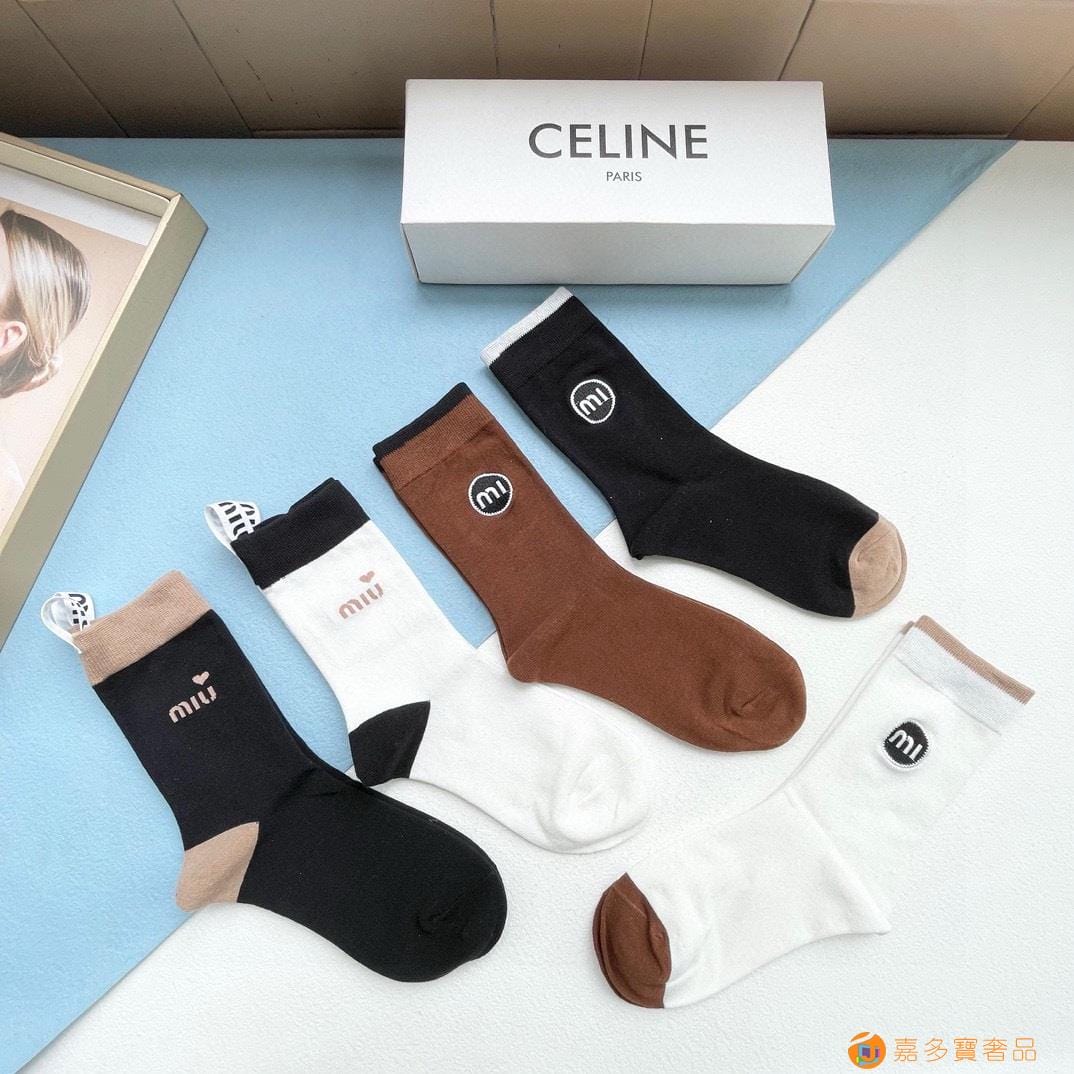 配包装【一盒五双】?Celine赛琳 爆款中筒袜?高版本