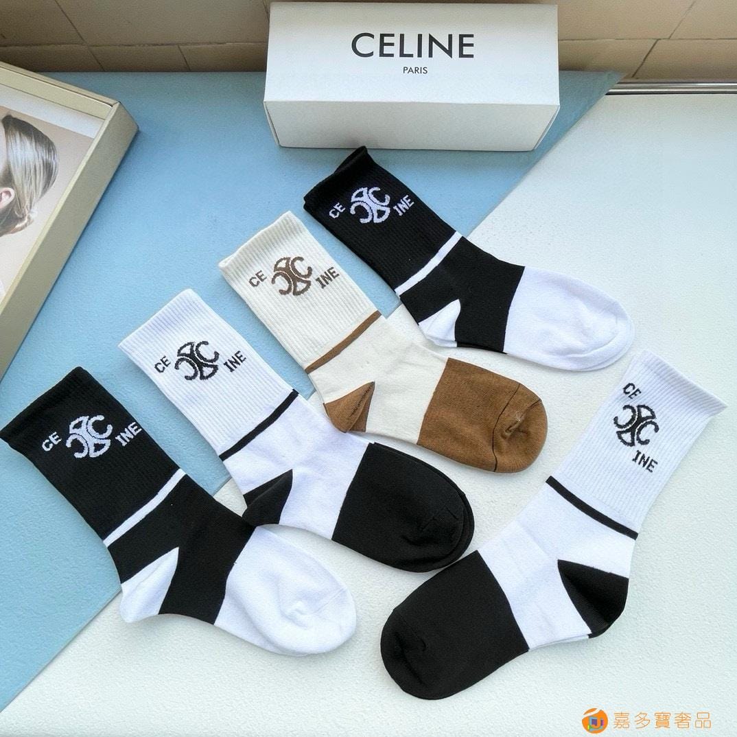 配包装【一盒五双】?Celine赛琳 爆款中筒袜?高版本