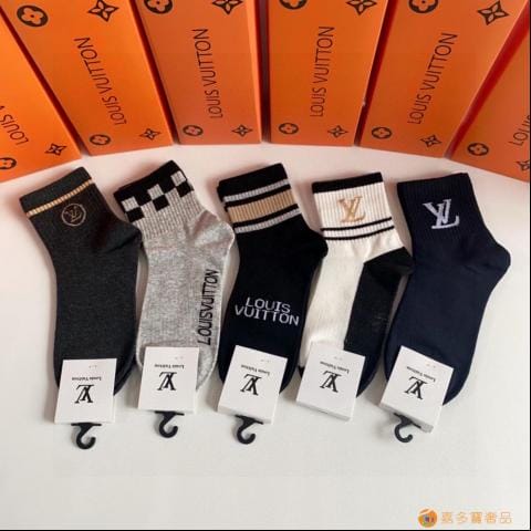 LV(路易威登)新款中短款堆堆袜袜子!一盒五双