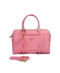 PRADA普拉达/时尚荔枝纹/樱花粉/真皮/女士手提单肩包 0828
