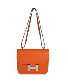 Hermes 爱马仕 橙色 女士真皮单肩包/斜挎包 银扣