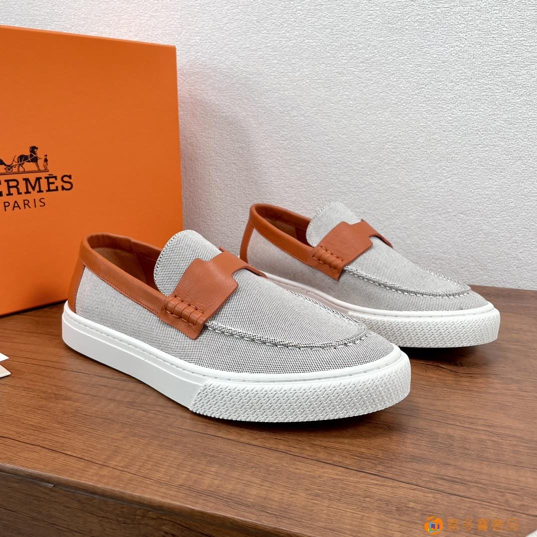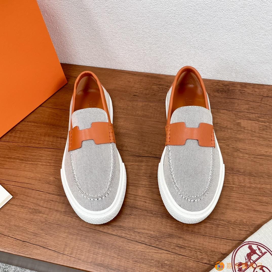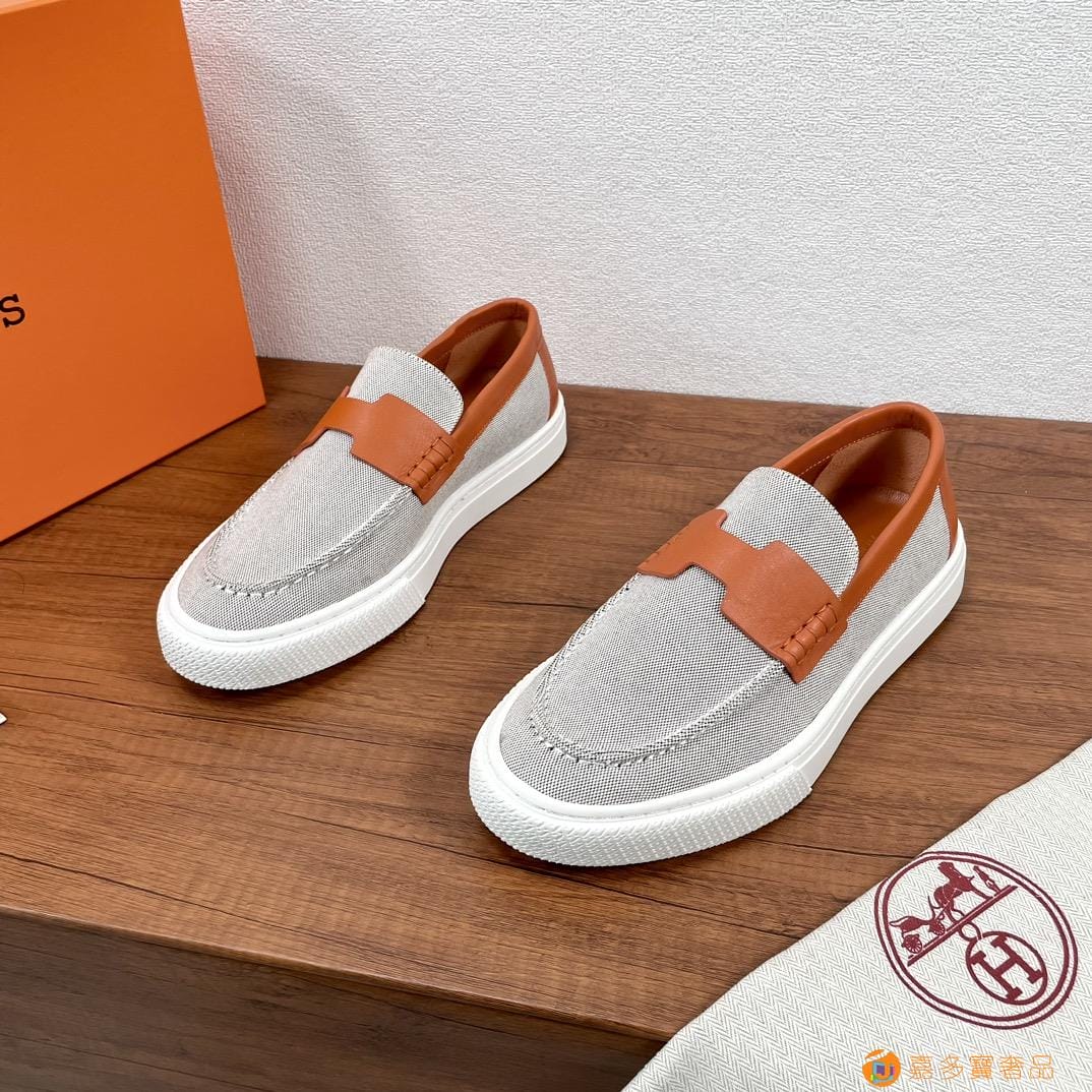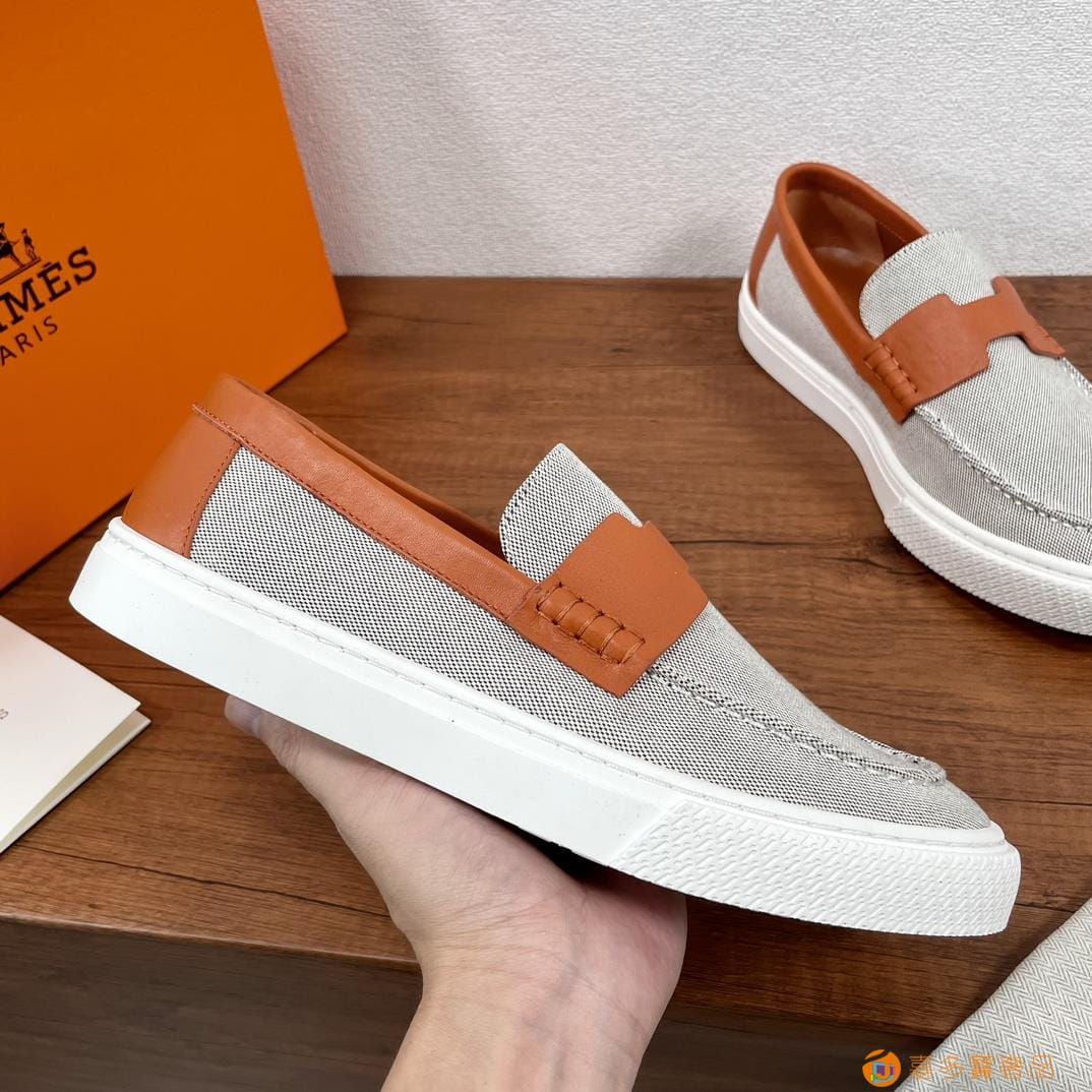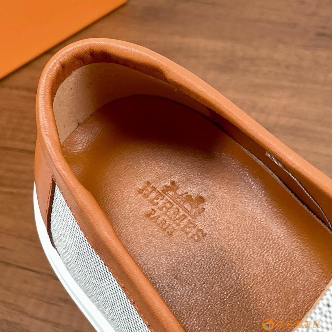 HERMES/爱马仕 新款男士织物皮革拼接休闲运动