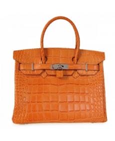 Hermes Birkin 爱马仕铂金包 35 鳄鱼纹 橙色金扣