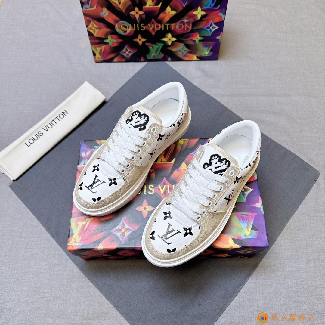 《LV》低帮运动鞋,精选进口软面小牛皮拼接经典VC老花帆布,