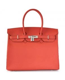 Hermes 爱马仕Birkin 女士大红色铂金手提包 银扣