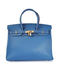 Hermes 爱马仕 真皮女包 女士铂金手提包 35浅蓝色 手掌纹