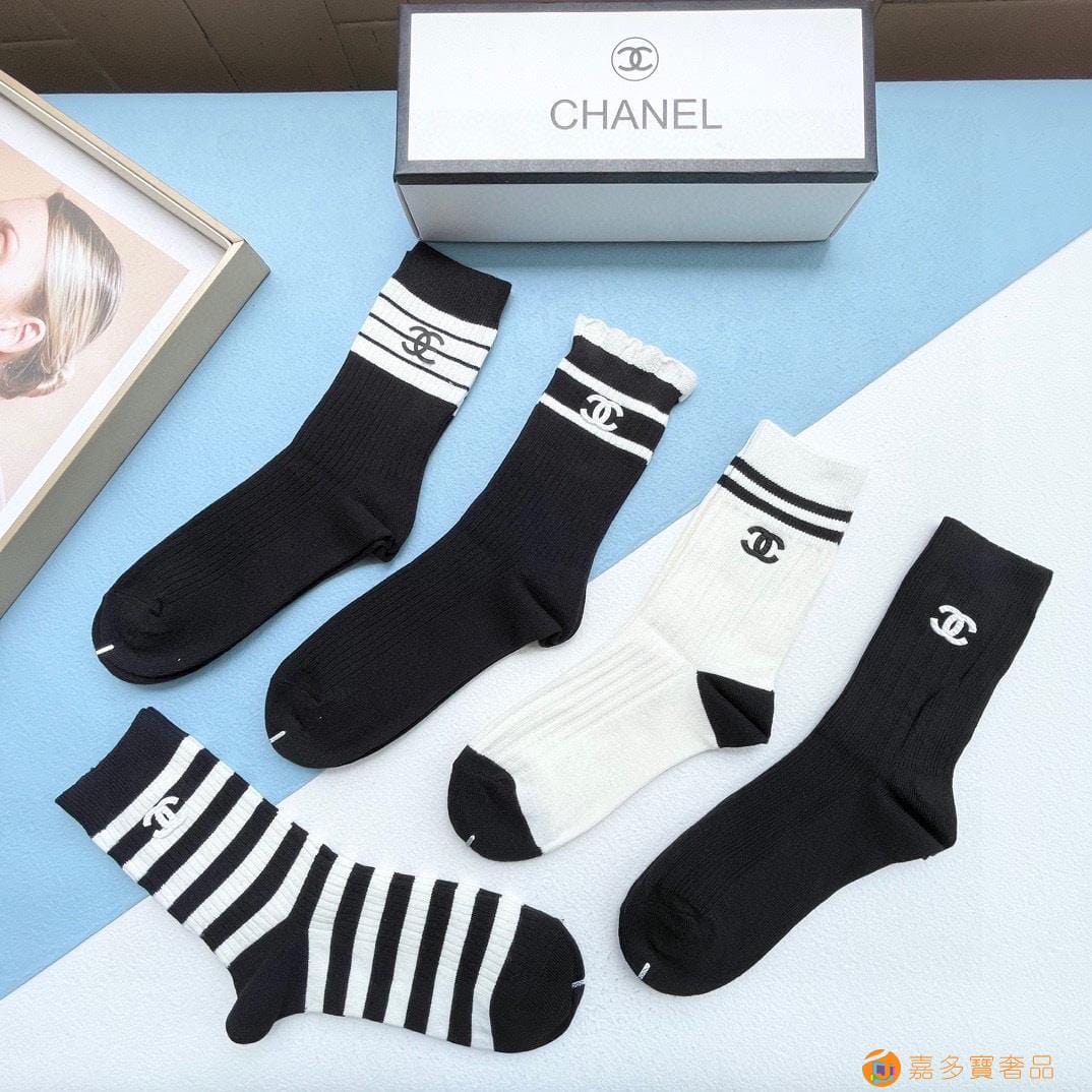 配包装【一盒五双】CHANEL · 香奈儿??高品质?超级爆款网红袜子??小香家官网同步饰品字母中筒袜,ins明星网红推荐??火爆至极?纯棉材质,轻薄柔软透气,四季通用,欧美大牌街头必备?