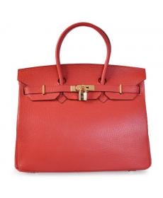 Hermes 爱马仕Birkin 女士大红色手提包 金扣