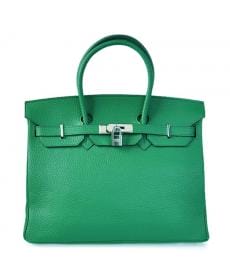 Hermes 爱马仕Birkin 女士深绿色手提包 银扣