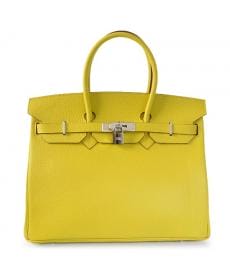Hermes 爱马Birkin女士土黄色铂金手提包 银扣