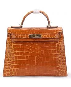 Hermes 爱马凯莉女士浅啡色鳄鱼纹手提包