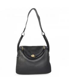 Hermes爱马仕 黑色 女士真皮单肩包/斜挎包 中号 金扣
