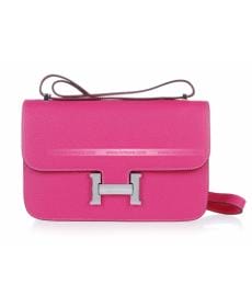 Hermes 爱马仕康斯坦女士玫红色单肩包 斜挎包