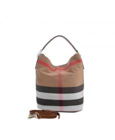 BURBERRY/巴宝莉/pvc配皮/女士单肩包/水桶包 HAYMARKET格子