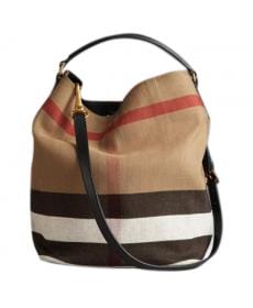 BURBERRY/巴宝莉/pvc配皮/女士单肩包/水桶包 HAYMARKET格子
