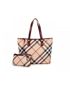 BURBERRY/巴宝莉/pvc配皮/女士手提包/格子托特包/酒红色