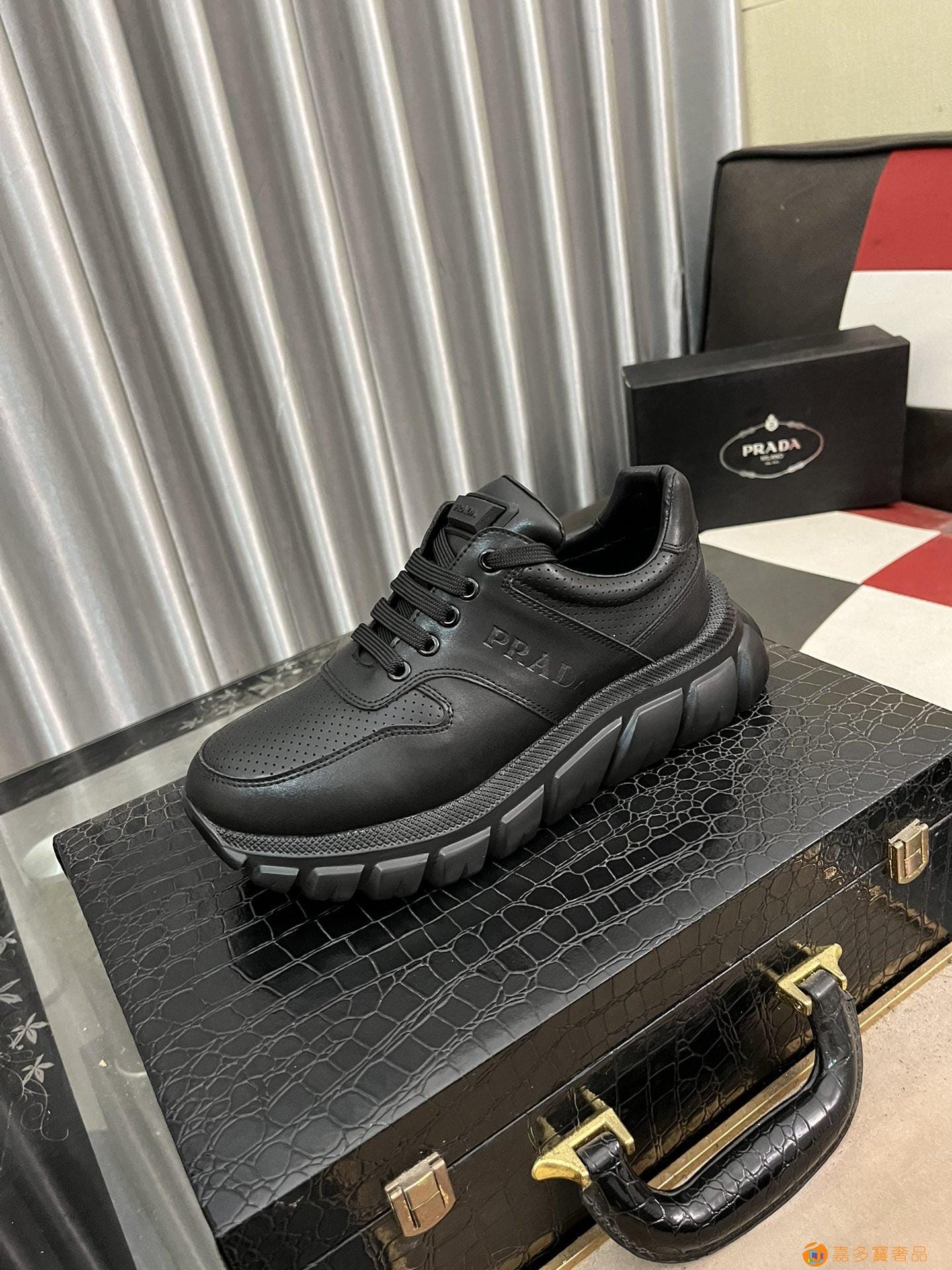 ?:{普拉达}男士皮革休闲运动鞋,莞产猛货!采用进口纯色小牛