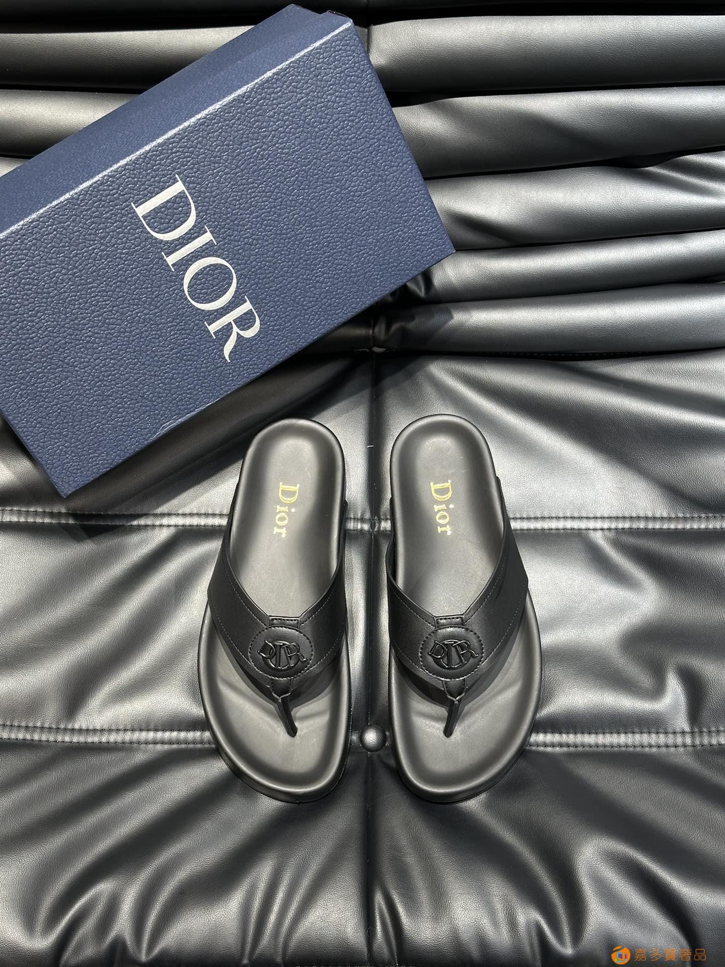 ???? Dior*~ 高端男士真皮大底夏季拖鞋,鞋面材质头