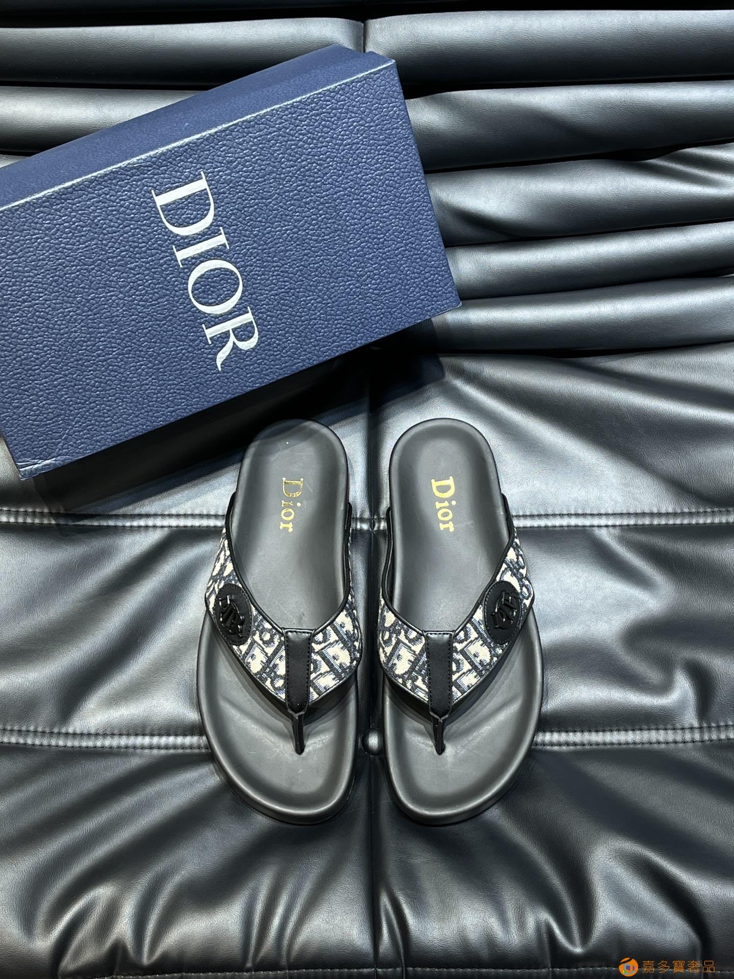 Dior*~家经典男士拖鞋,高端精品,原版材质,鞋面纯棉印花