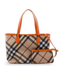 BURBERRY/巴宝莉/女士单肩包/格子托特包/橙色