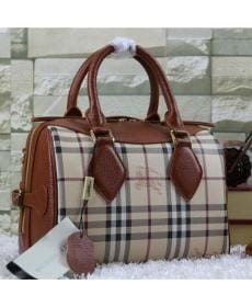 BURBERRY/巴宝莉/帆布配皮/女士手提包/格纹保龄球包