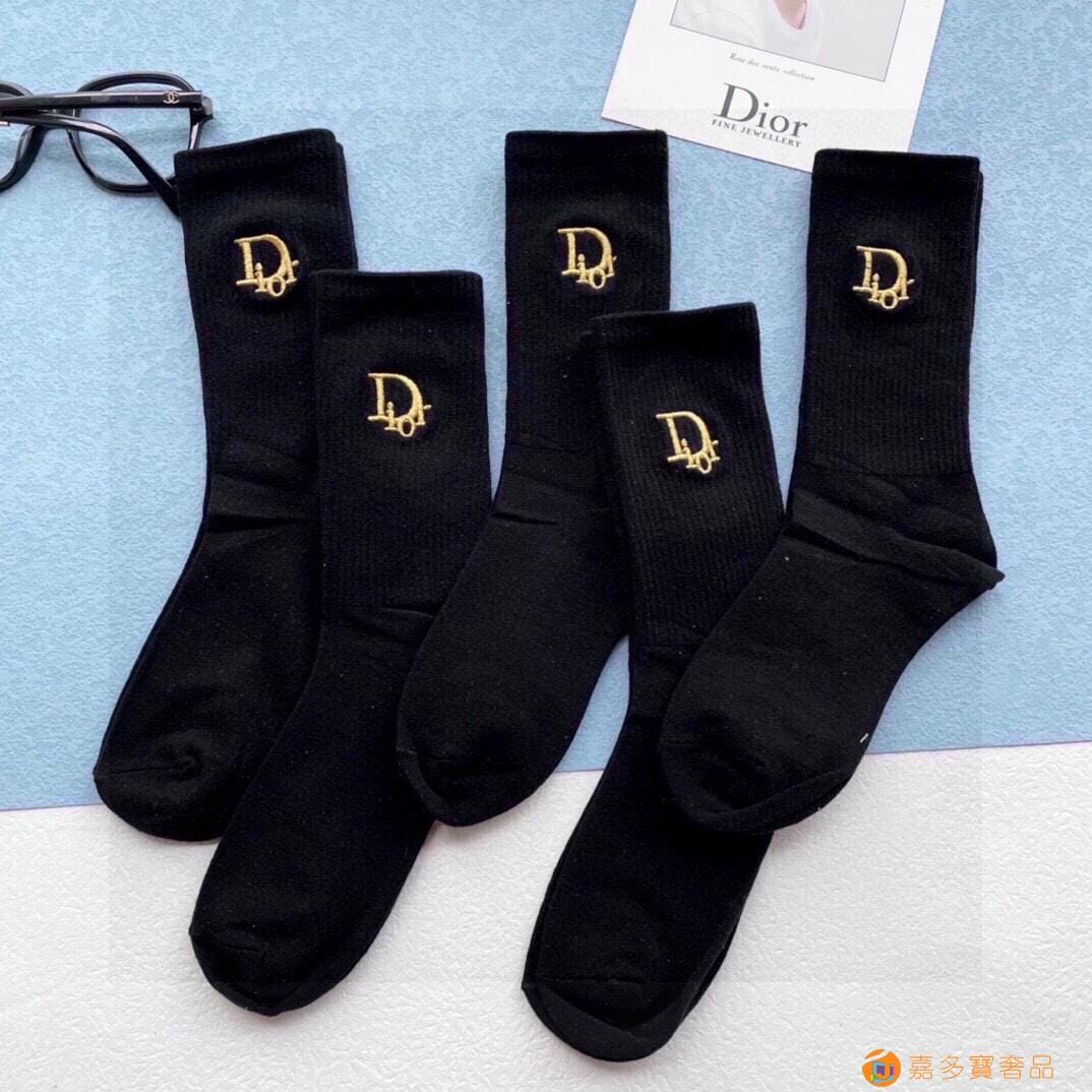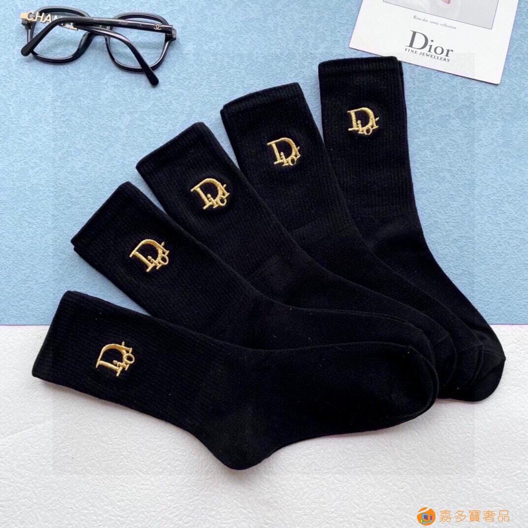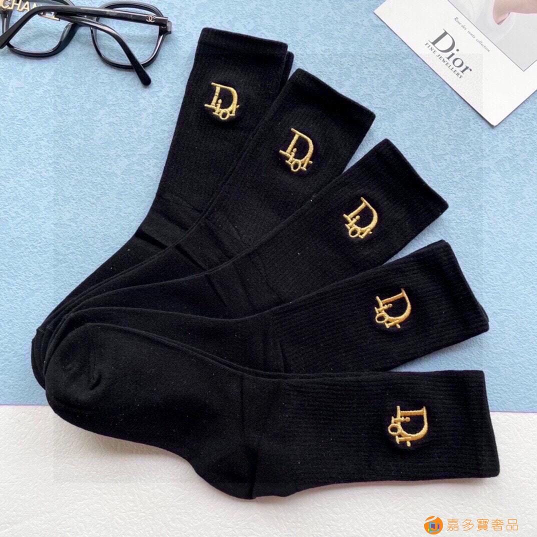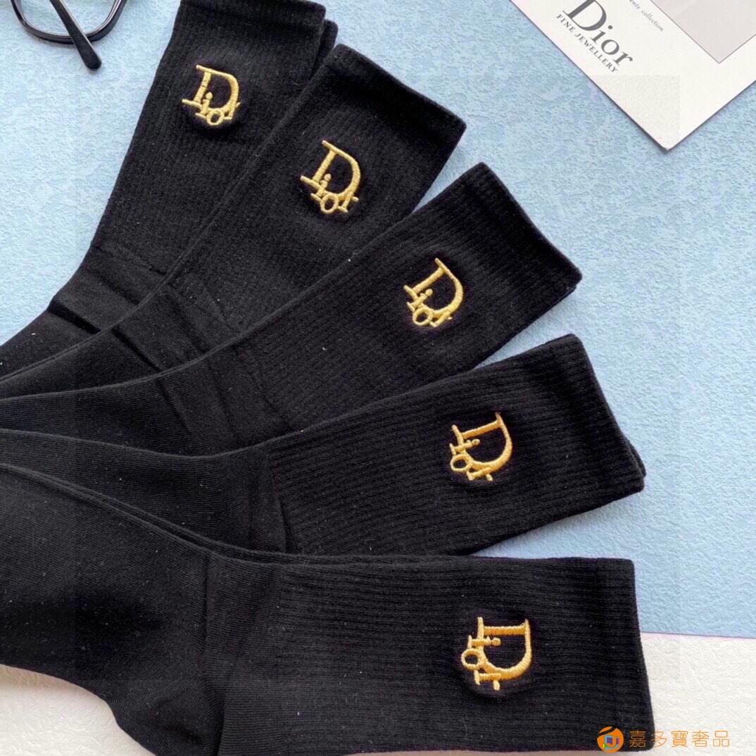 配包装【一盒五双】DIOR迪奥新款刺绣中长款袜子!罗口刺绣品
