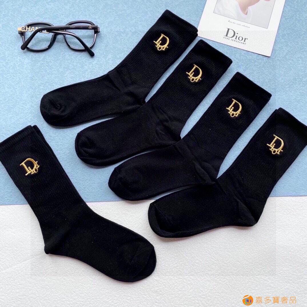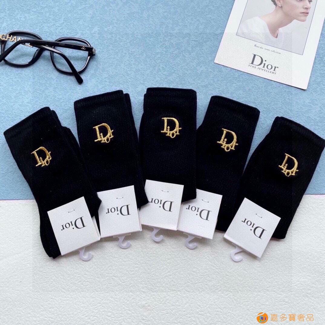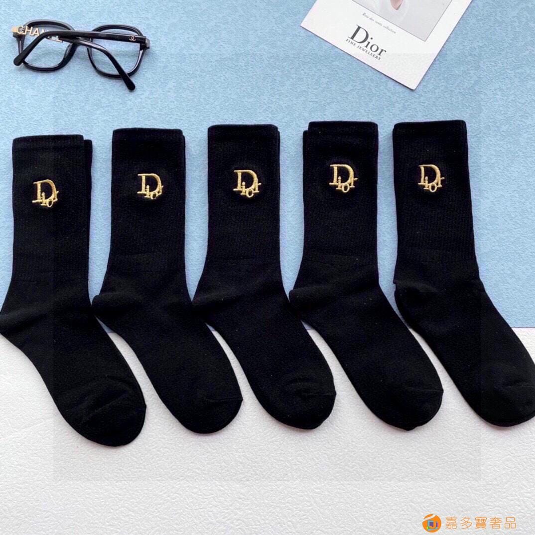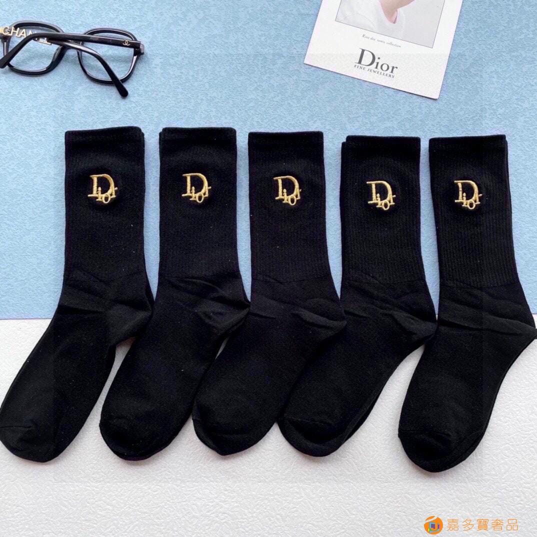 配包装【一盒五双】DIOR迪奥新款刺绣中长款袜子!罗口刺绣品